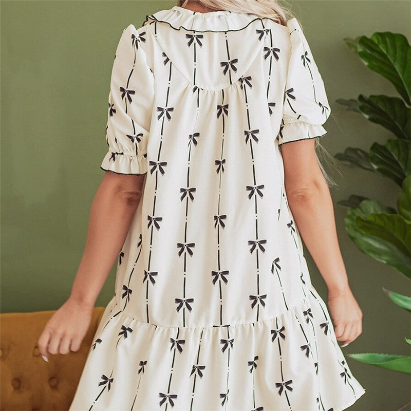 Adorable cartoon print short sleeve top & shorts set - loose, cute & all-match Dacron homewear. Features square-neck design for intellectual retro style. Perfect for summer casual wear, leisure fashion & looking younger. Girlish sweetness meets light maturity in this artistic jumpsuit alternative. Great for going out or lounging!" (239 chars)