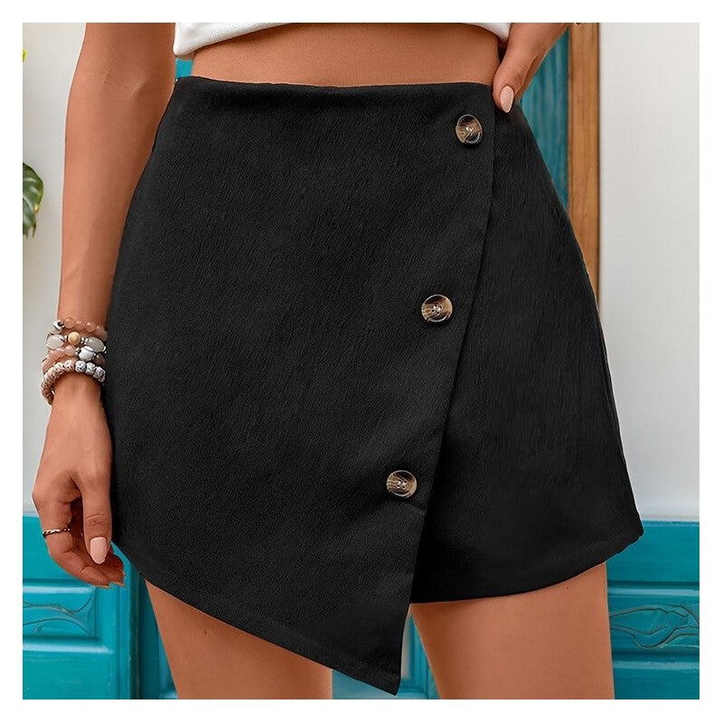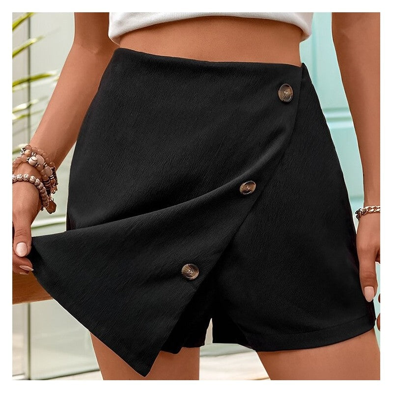 Button Decorated High-Waisted Solid Color Skirt Pants