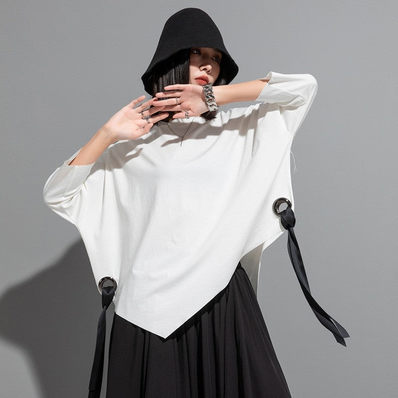 Elevate your casual wardrobe with this chic Batwing Sleeve Knit Belt T-Shirt. Crafted from soft cotton, it offers a loose fit and an intellectual, all-match design perfect for any occasion. Featuring stylish batwing sleeves and a trendy round neck, this top is ideal for going out or