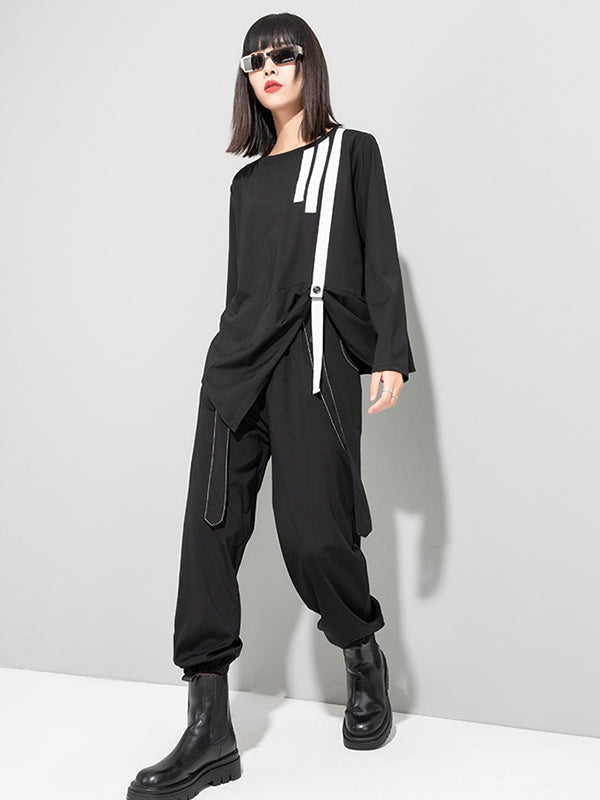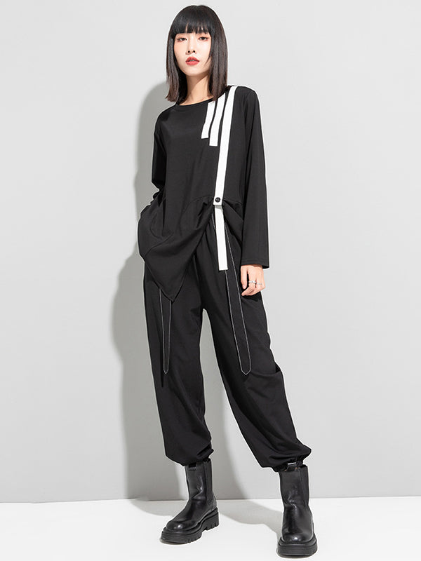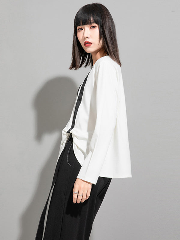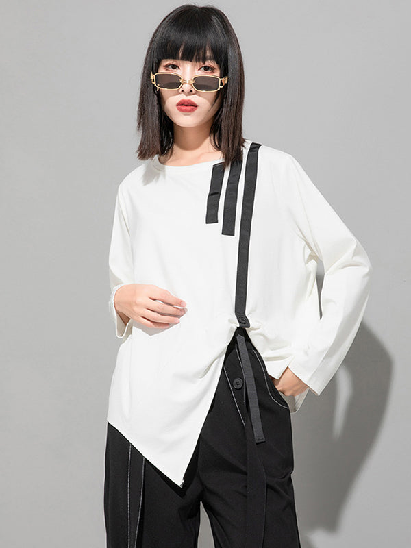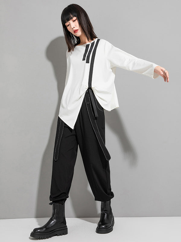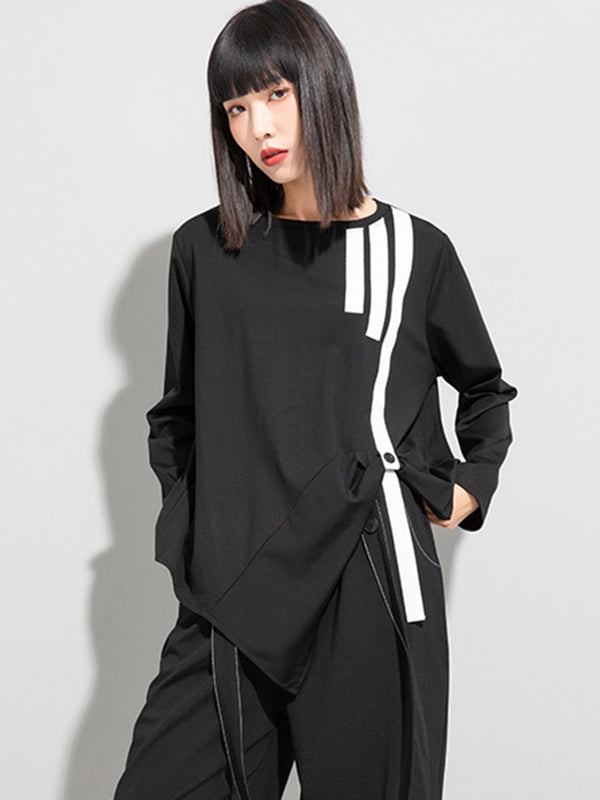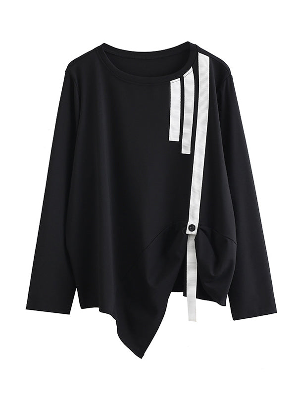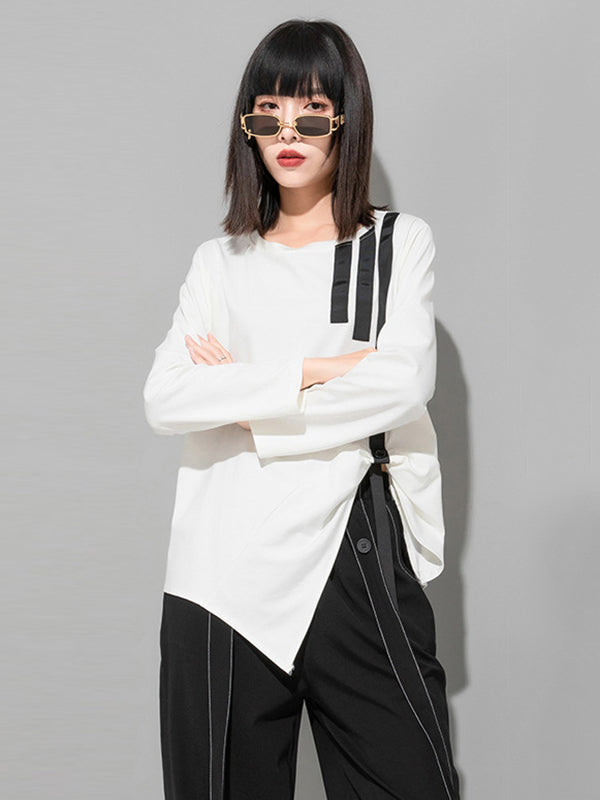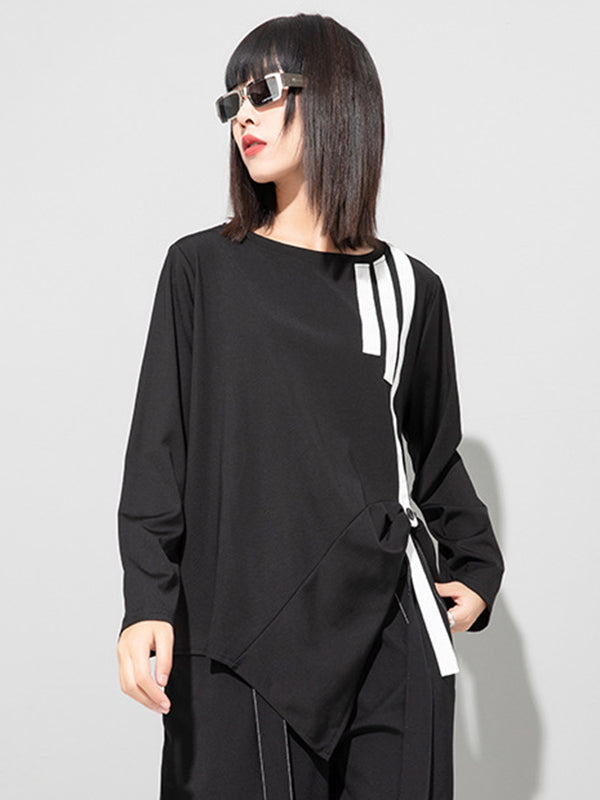 Casual Contrast Color Split-Side Long Sleeves T-Shirt Top
