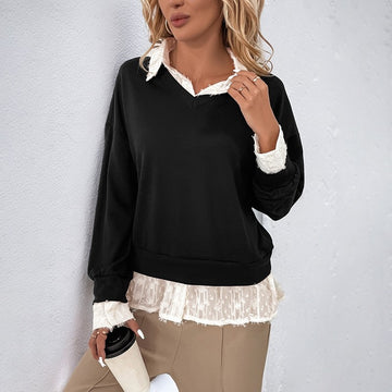 Casual Lapel Spliced Two-Piece Sweatshirt