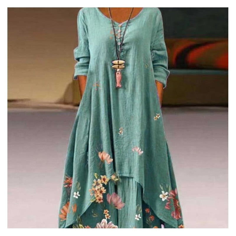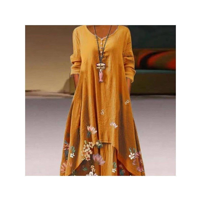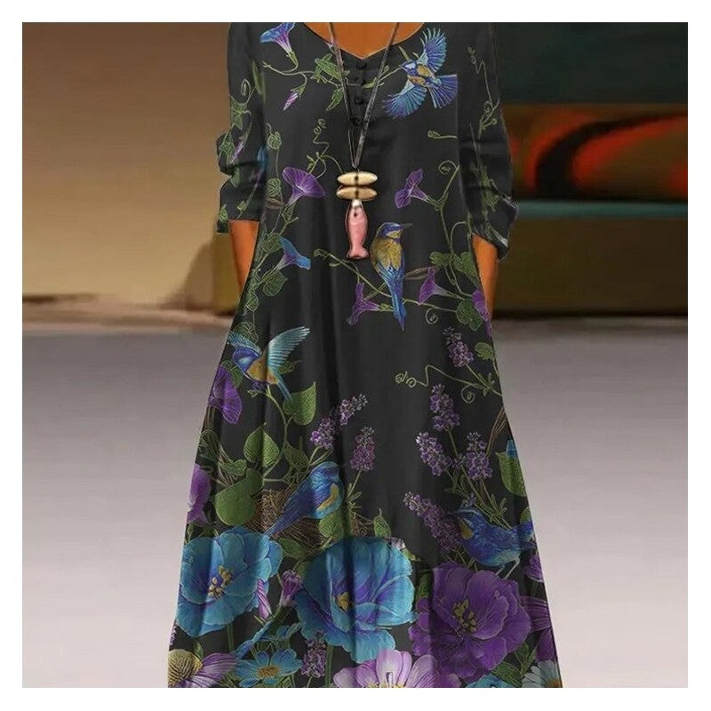 Casual Long Sleeve Dress With Round Neckline And Print