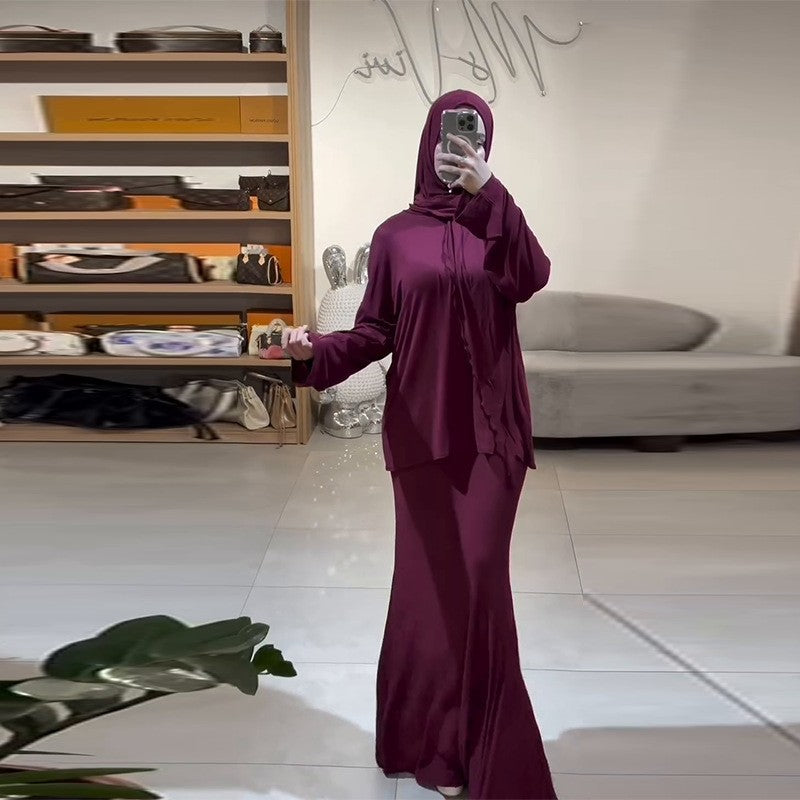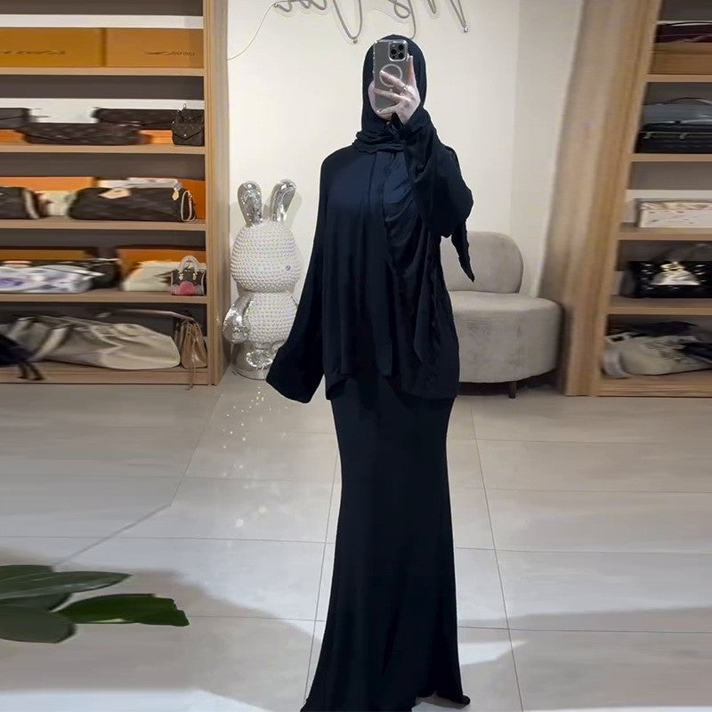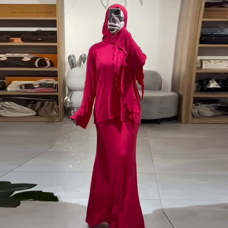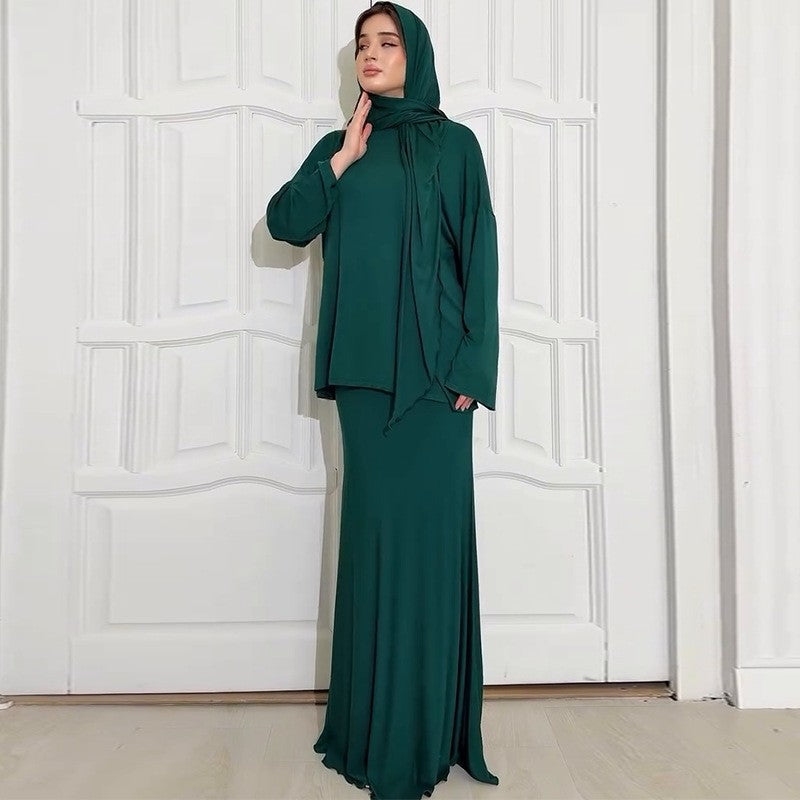 Casual Loose Scarf Top Skirt Set
