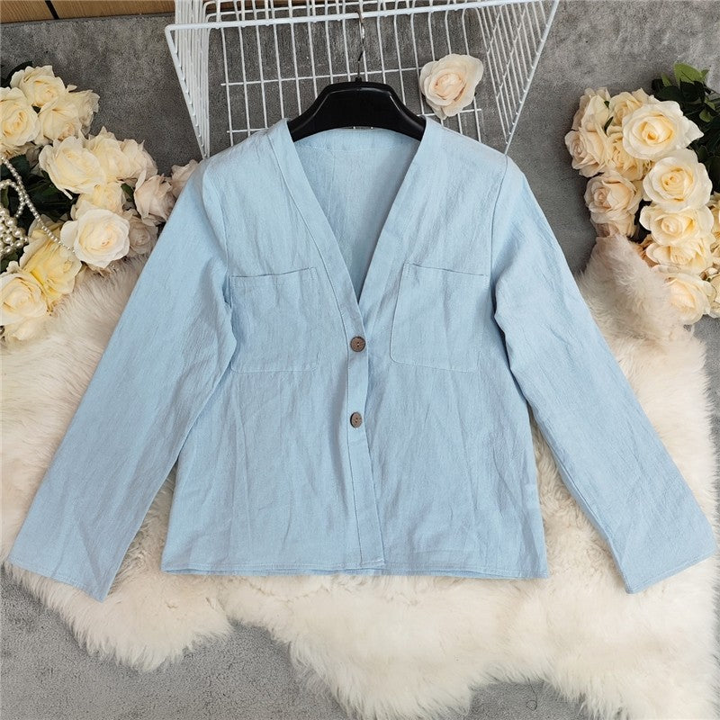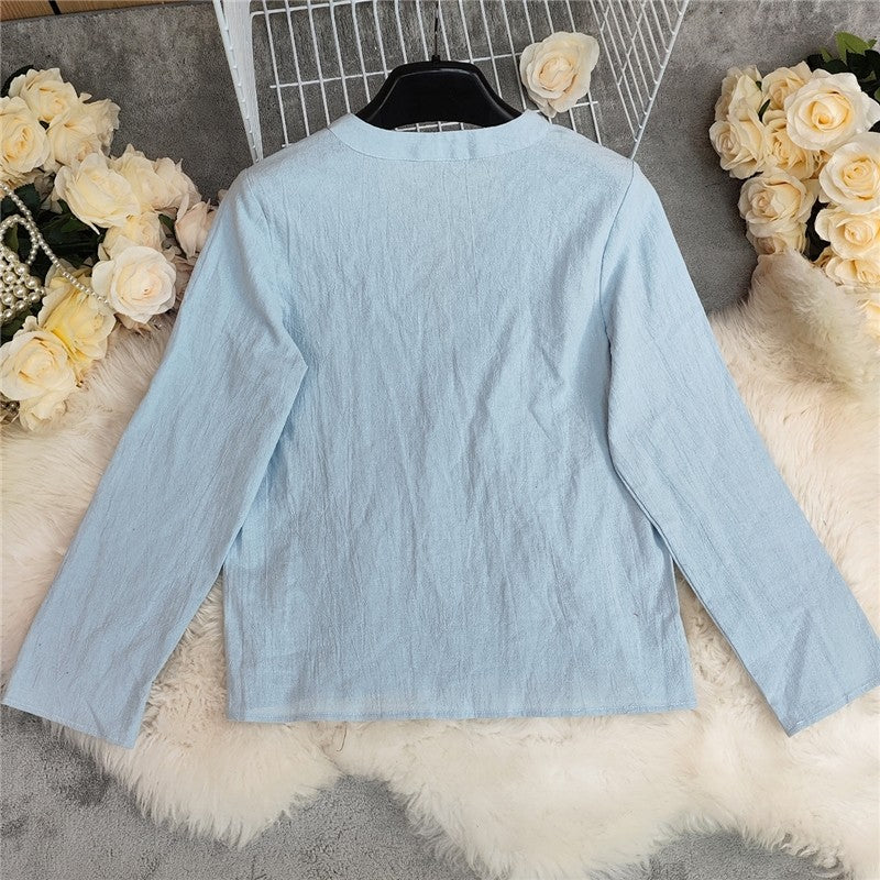 Casual Solid Color Loose Long Sleeve Shirt