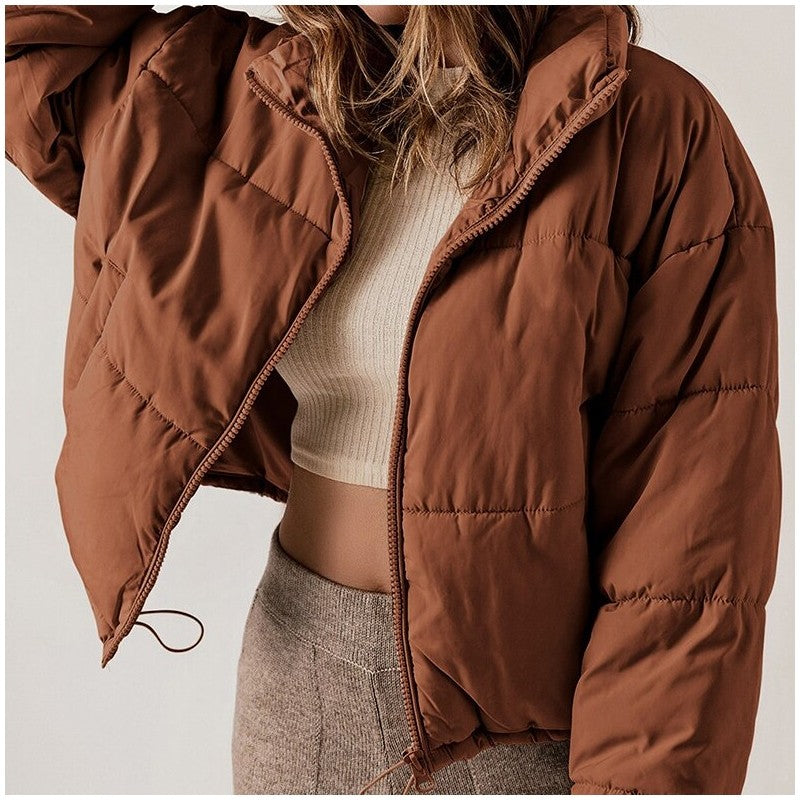 Casual Solid Color Stand Collar Short Cotton Jacket