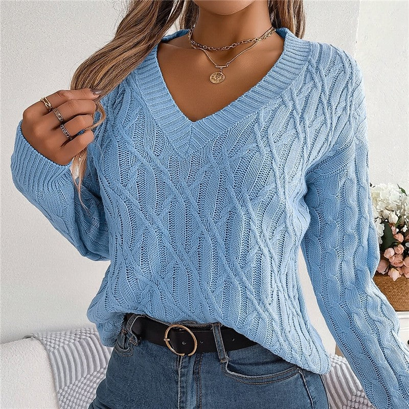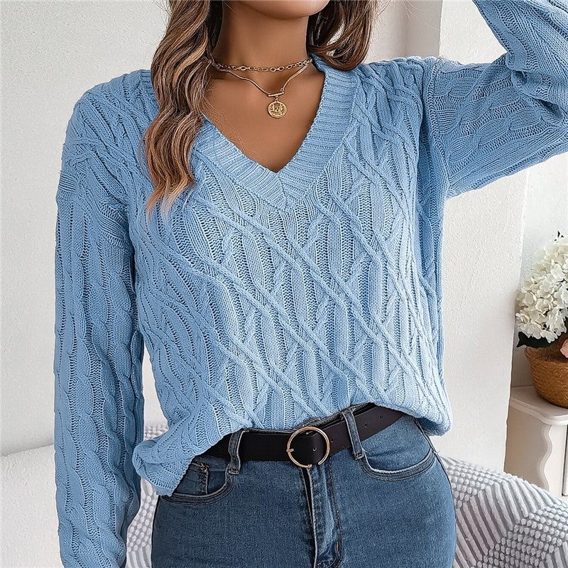 Casual Solid Color Twist V-Neck Long Sleeve Sweater