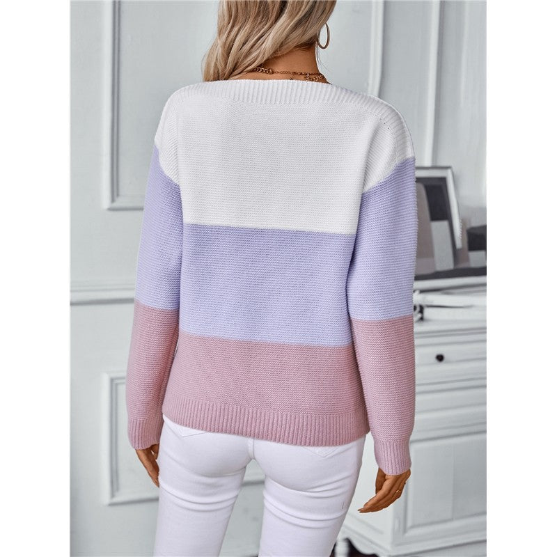 #Contrast Color Crewneck Sweater, #Polyester Knit Pullover, #Retro Color-Block Sweater, #Loose Boat Neck Sweater, #Casual Autumn Knitwear, #Dacron Long Sleeve Sweater, #Going Out Pullover, #Light Maturity Sweater, #Color-Block Knitwear, #Autumn Crewneck Sweater,