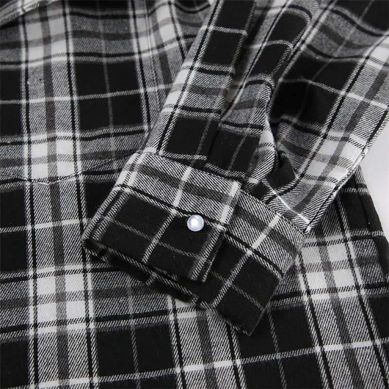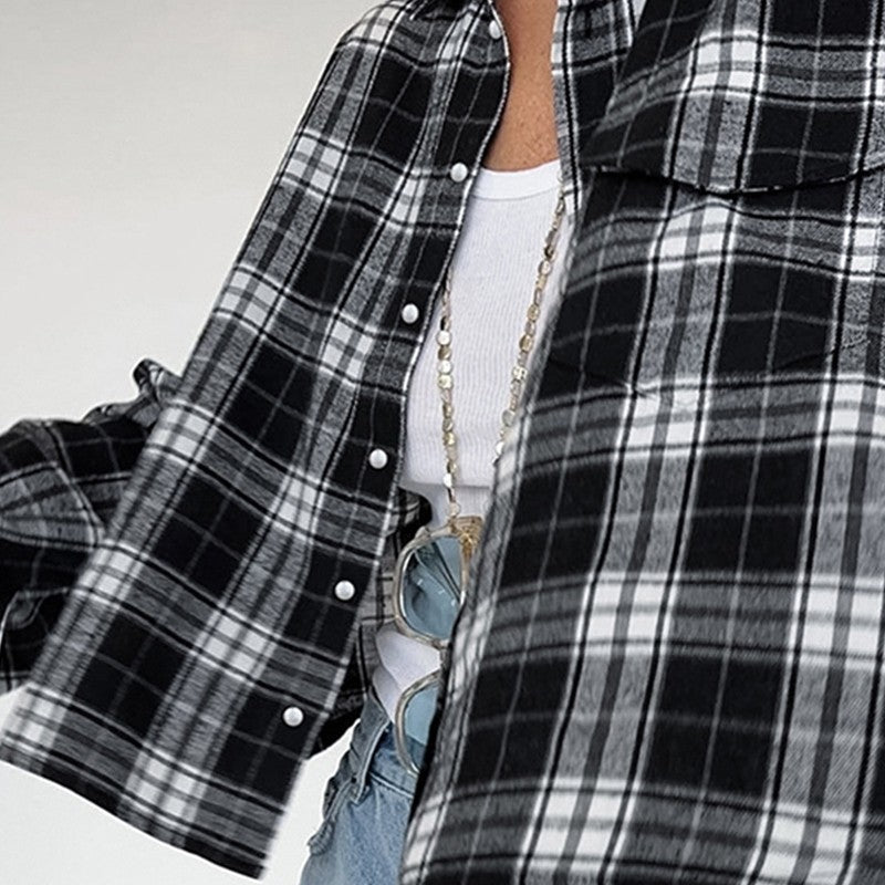 Contrast Color Plaid Long Sleeve Lapel Single Breasted Casual Loose Short Blouse