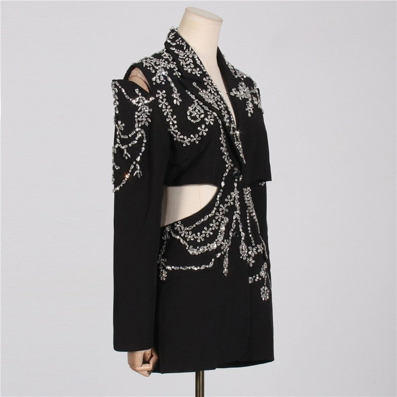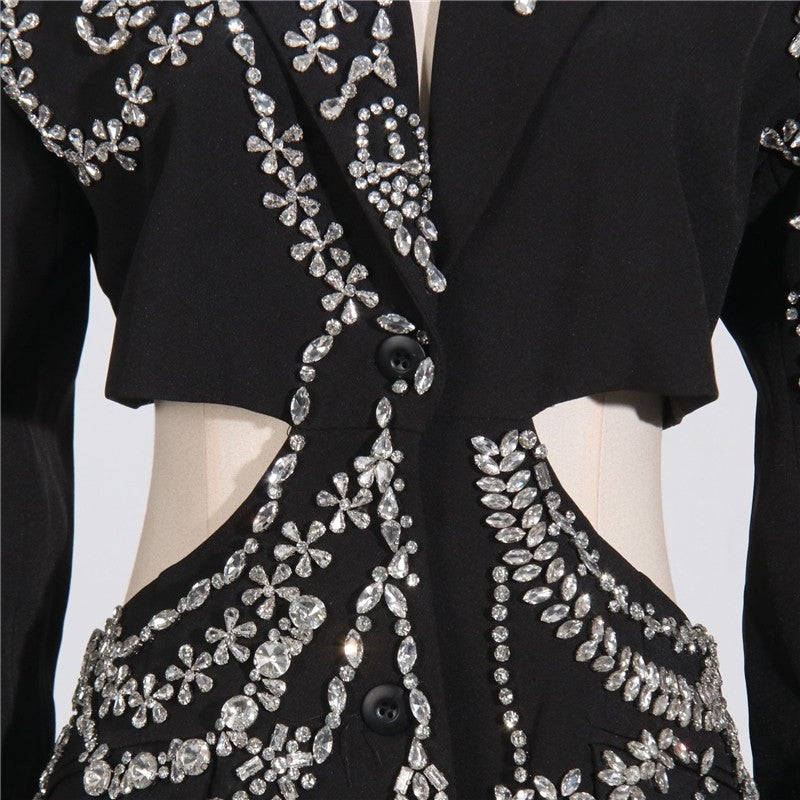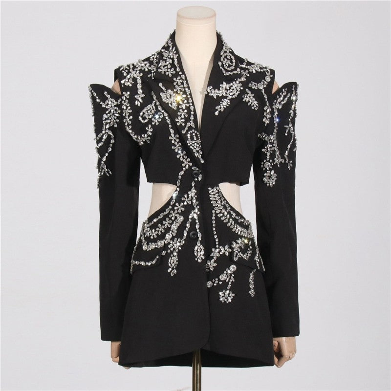 Diamond-Studded Open-Shoulder Blazer For Stylish Waist Definition