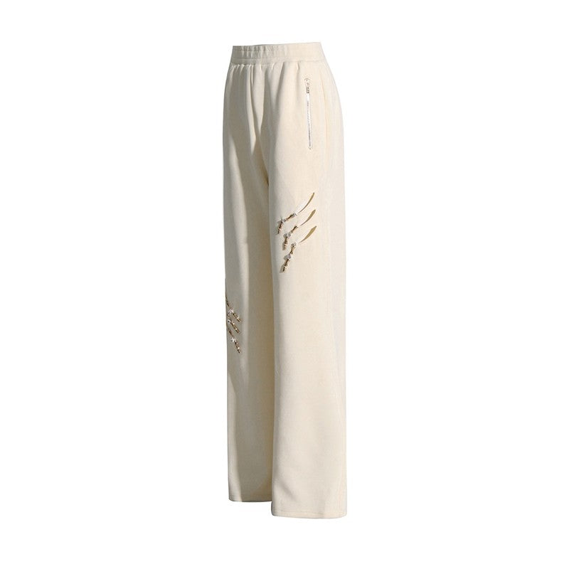 Elastic Waist Straight Leg Hollow Rhinestone Casual Loose Pants