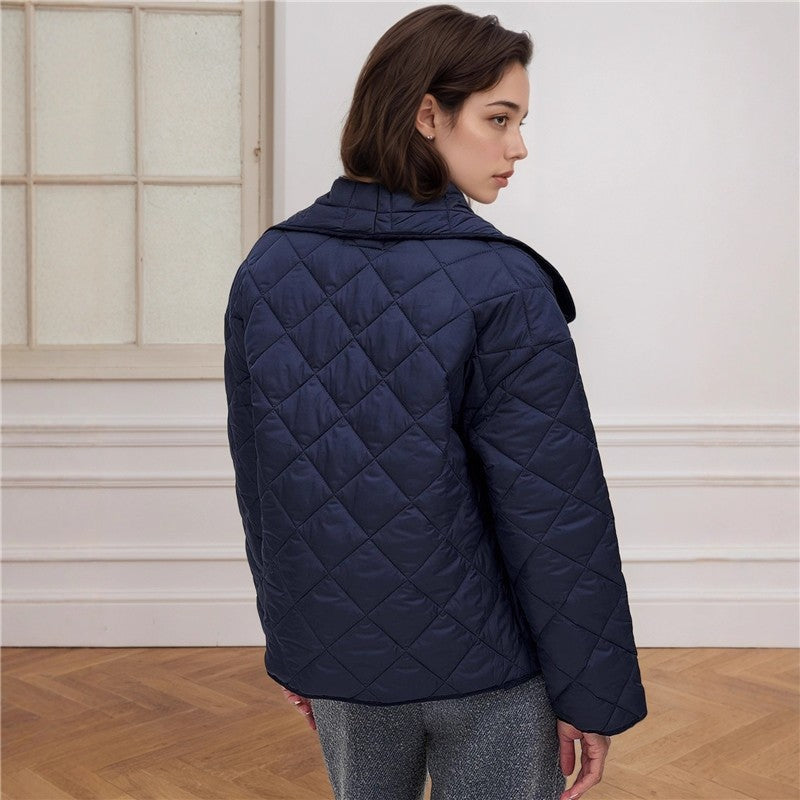 Fashionable Large Collar Quilted Short Loose Cotton Jacket