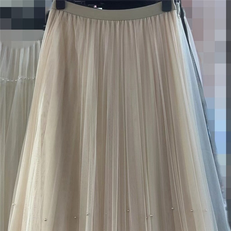 High-Waisted Midi Length Bead Embellished Tulle Skirt