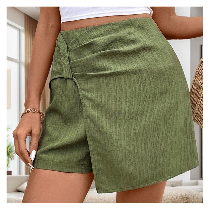 Elevate your style with these chic High-Waisted Textured Skirt Pants. Made from Dacron, these pants are not only cute but also intellectual, perfect for an all-match look. Featuring a zipper closure, pleats, and a high waist, these pants are ideal for going