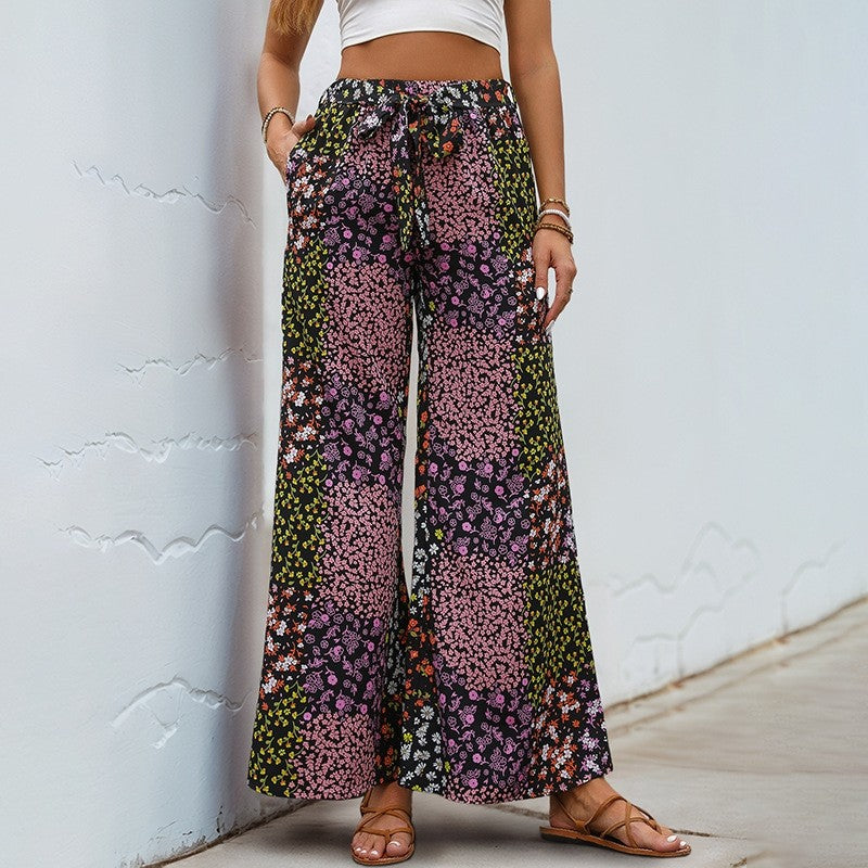 #High-Waisted Wide Leg Pants, #Printed Detail Pants, #Spandex Pants, #Dacron Pants, #Loose Fit Pants, #Cute Pants, #All-match Pants, #Look-younger Pants, #Printing Pants, #Going out Pants