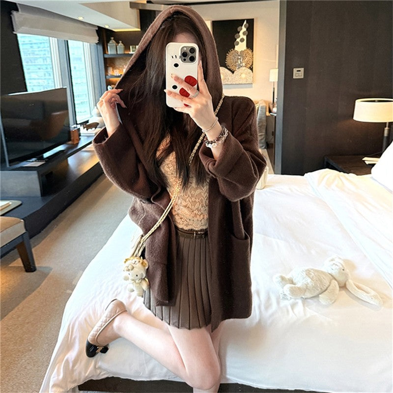 Stay cozy in this hooded sweater coat, perfect for autumn and winter. Features soft knitting, plain design, long sleeves, and a casual style. Ideal for everyday wear and layering in cold weather. Shop now for the best hooded knitwear.