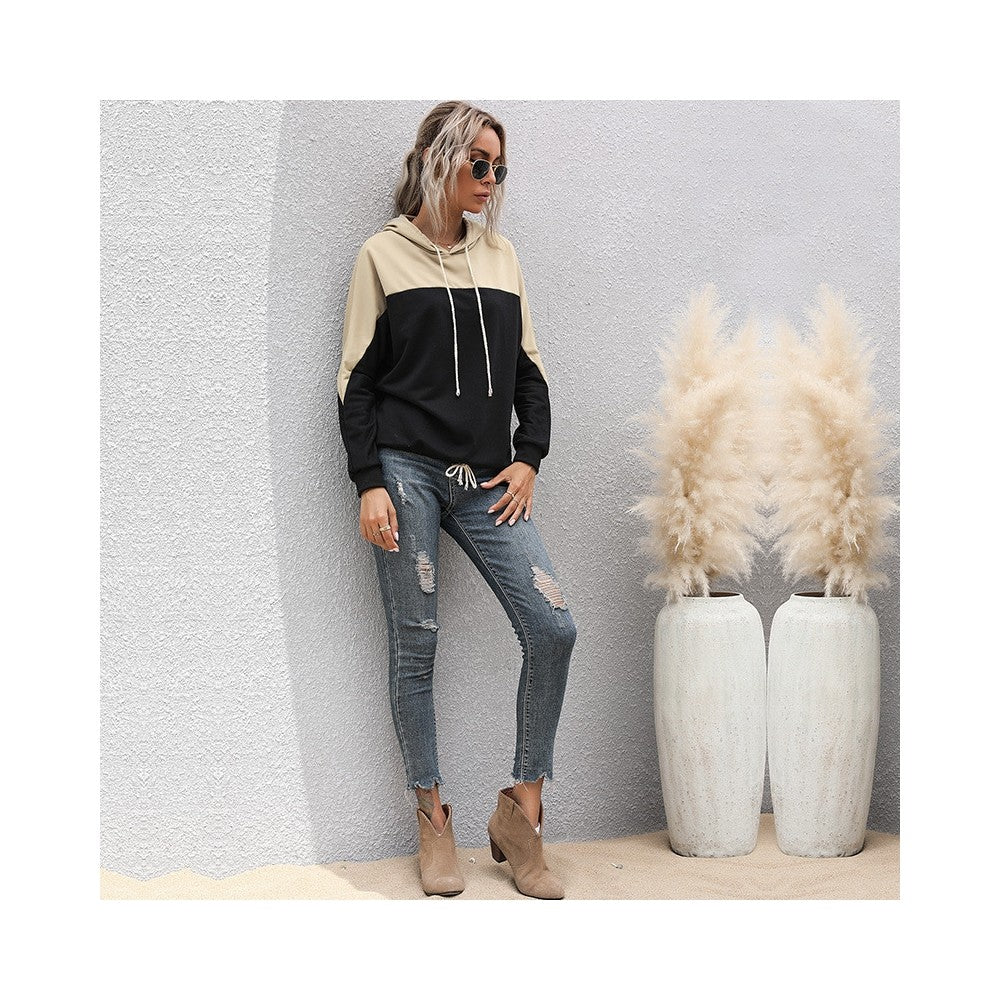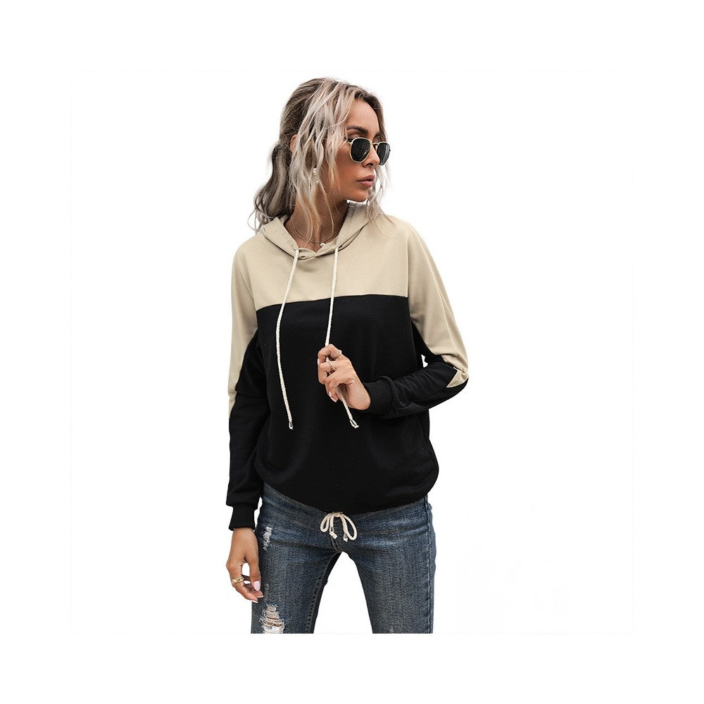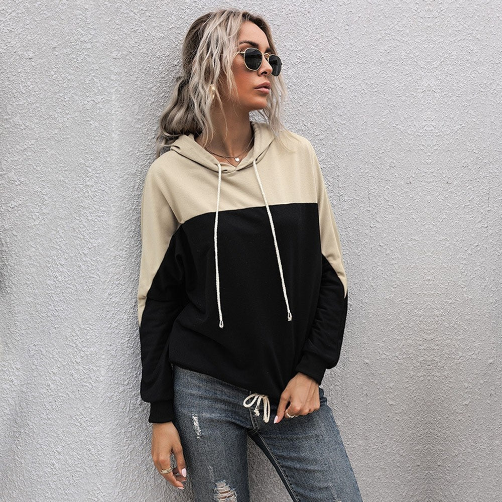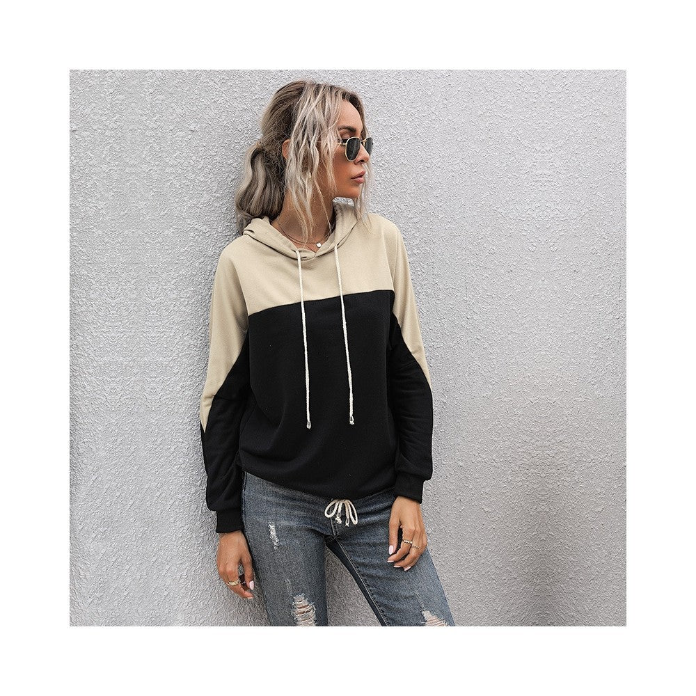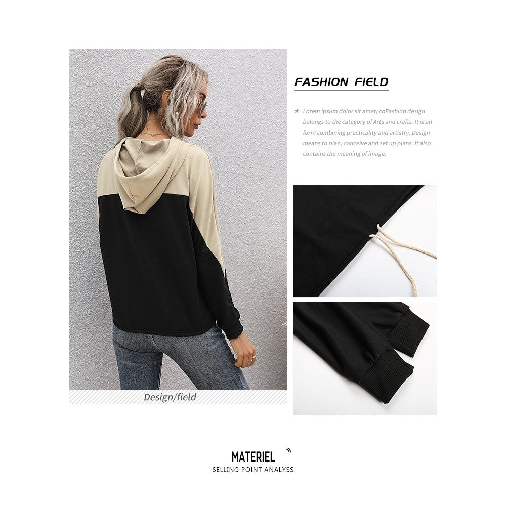 Long Sleeves Contrast Color Casual Hooded Sweatshirt