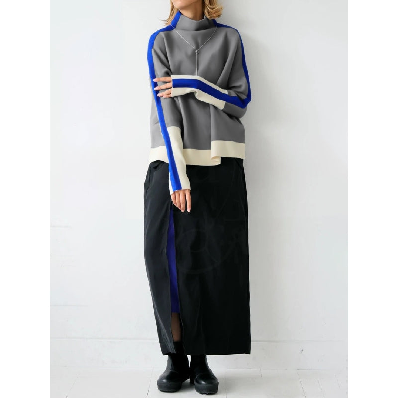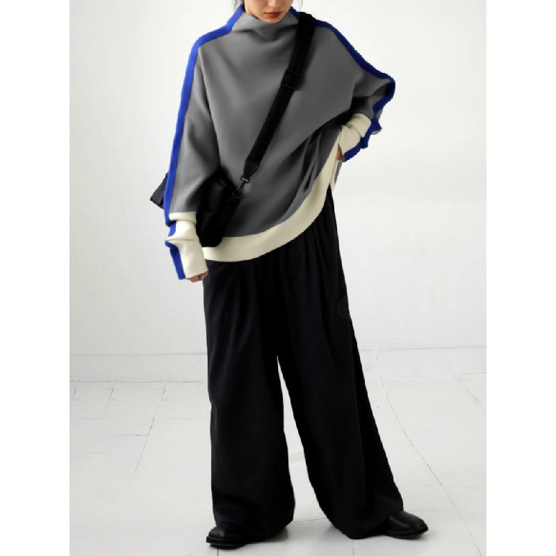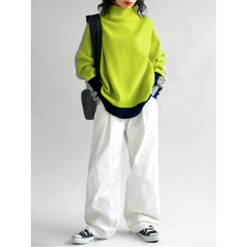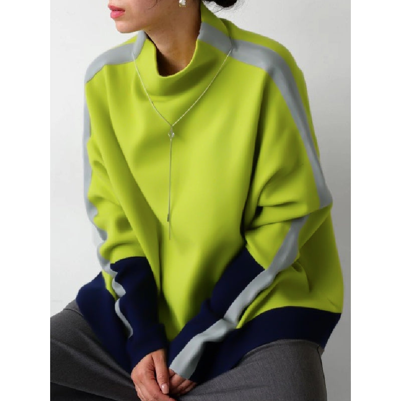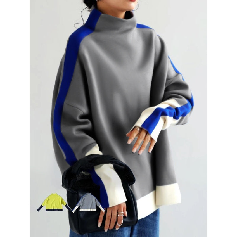 Long Sleeves Contrast Color Split-Joint High Neck Sweatshirt Tops