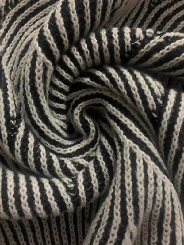 Long Sleeves Loose Contrast Color Split-Joint Striped Round-Neck Pullovers Sweater Tops