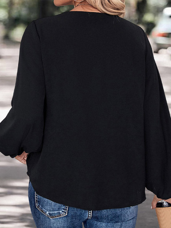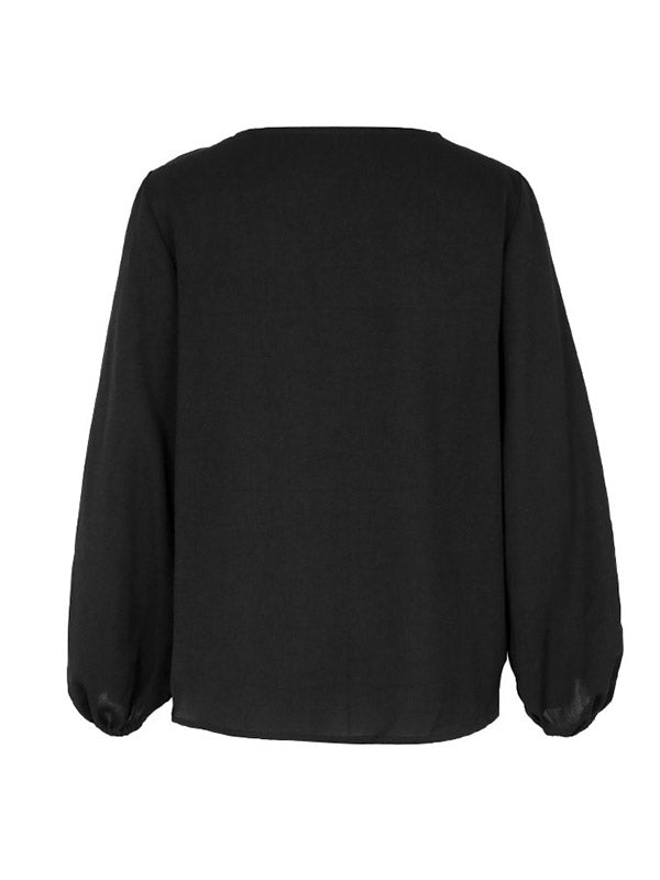 Long Sleeves Loose Elasticity Leopard Split-Joint V-Neck Blouses&Shirts Tops