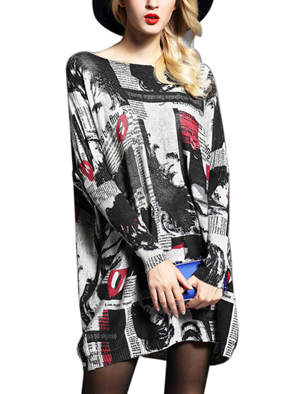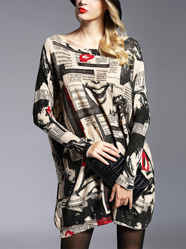 Long Sleeves Loose Letter Print Printed Round-Neck Knitwear Pullovers Sweater Tops