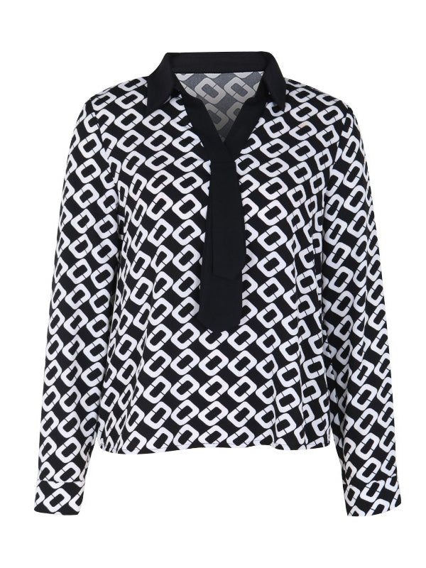 Long Sleeves Loose Printed Lapel Blouses&Shirts Tops
