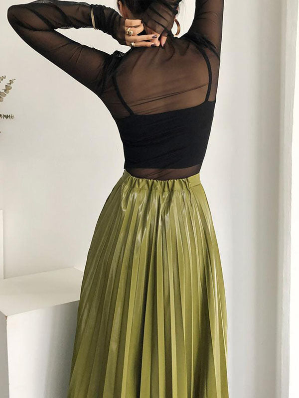 Long Sleeves Skinny Gauze See-Through Solid Color High Neck T-Shirts