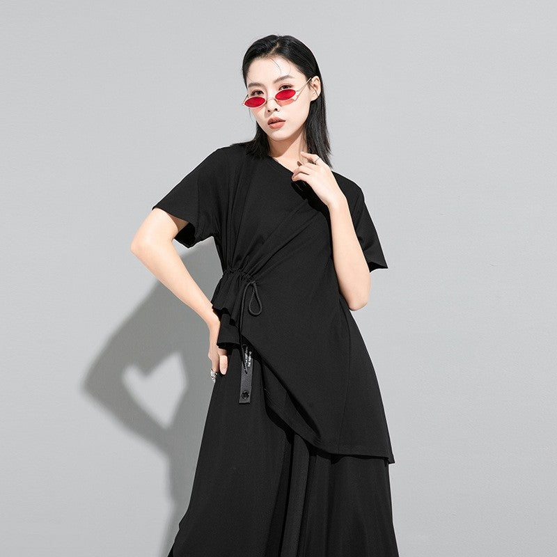 Elevate your casual style with this trendy Loose Batwing Short Sleeve Irregular T-Shirt. Made from soft and comfortable fabric, this unique t-shirt features a relaxed fit with batwing sleeves and an irregular hem. Perfect for adding a touch of chic flair to your everyday look.