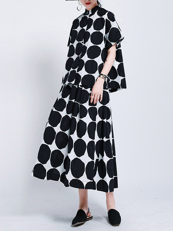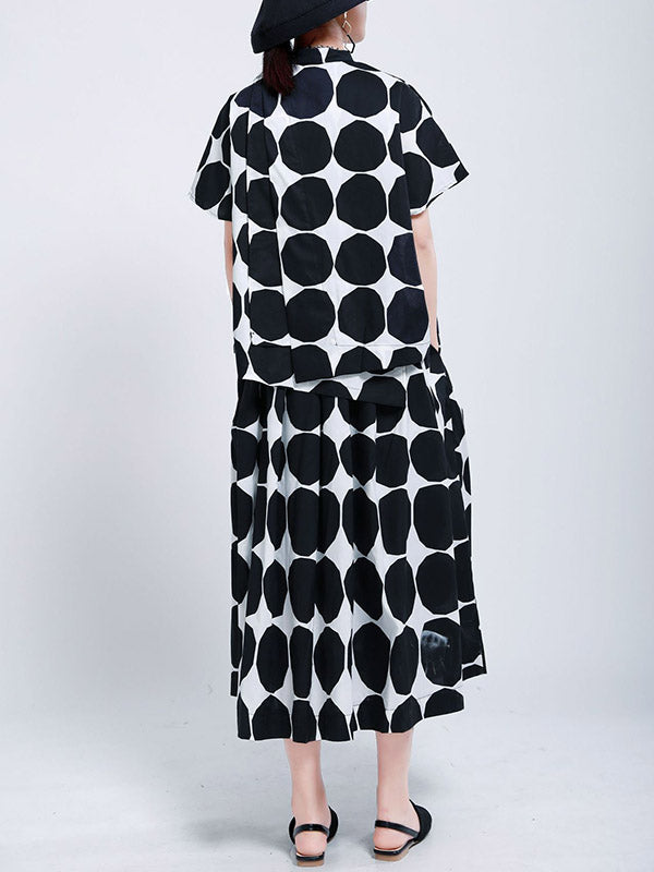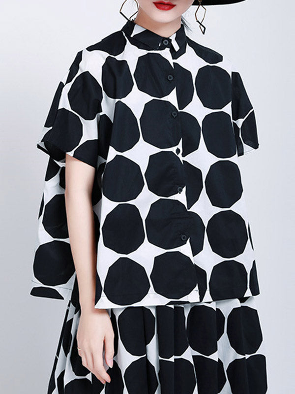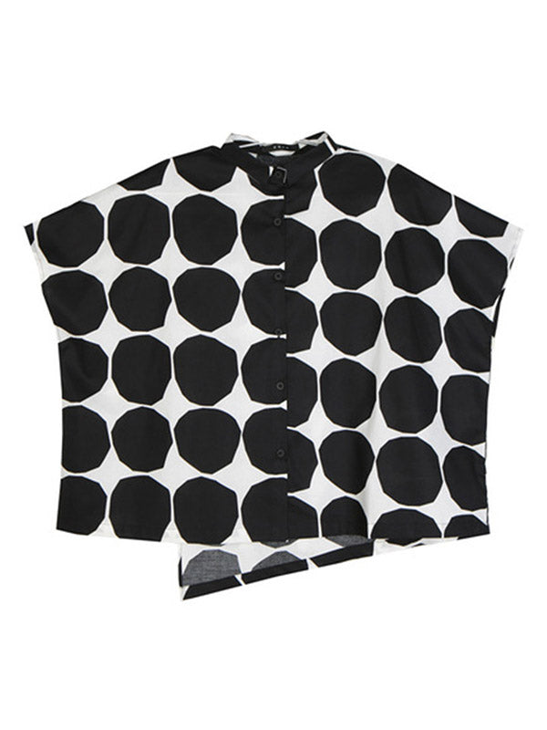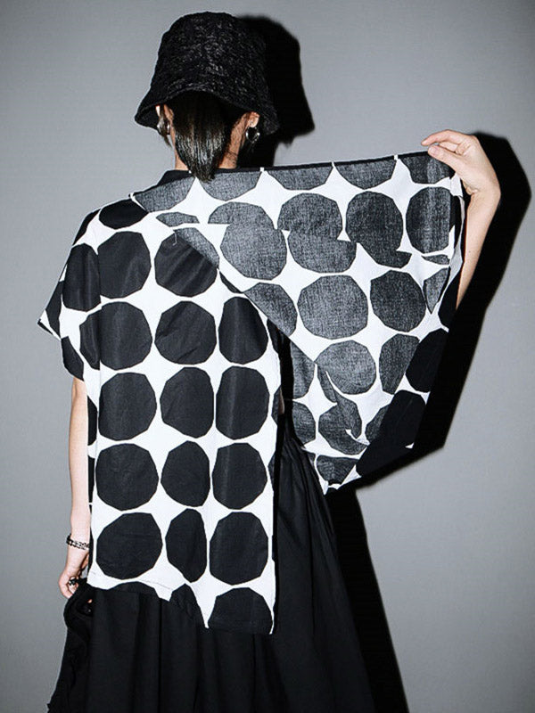 Loose Buckle Polka Dots Split-Back Lapel T-Shirts Tops
