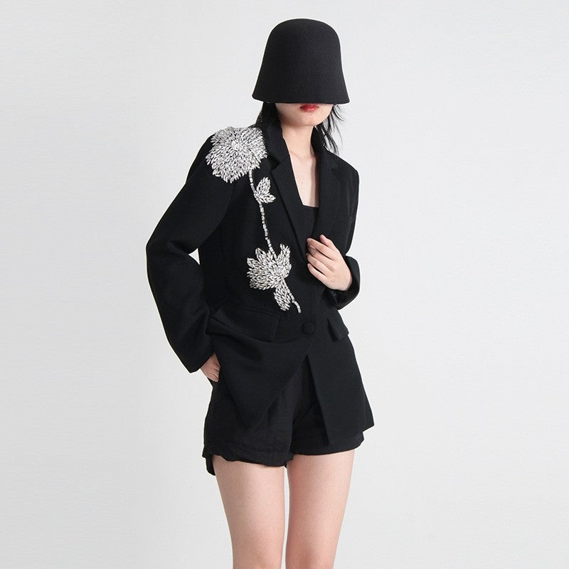 Loose Fit Beaded 3D Floral Patchwork Blazer