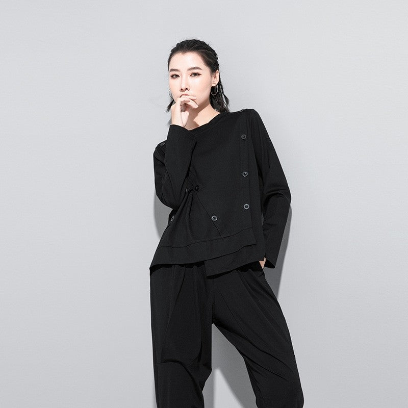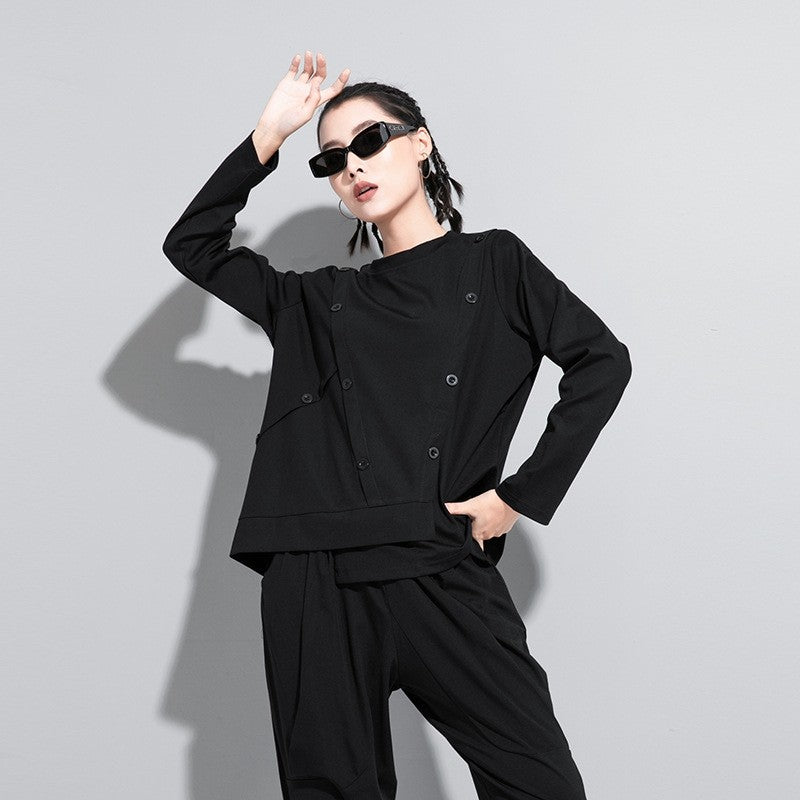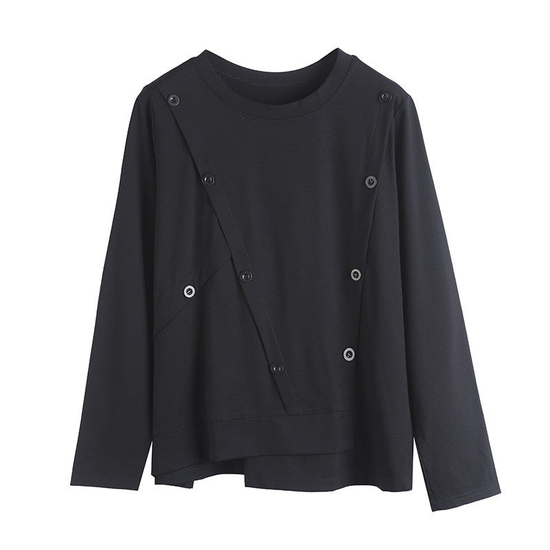 Loose-Fit Long Sleeve T-Shirt With Button Decoration