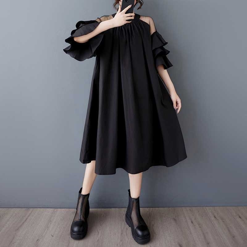 Loose-Fit Off-Shoulder Plus Size Dress With Mesh Paneling