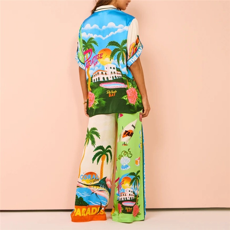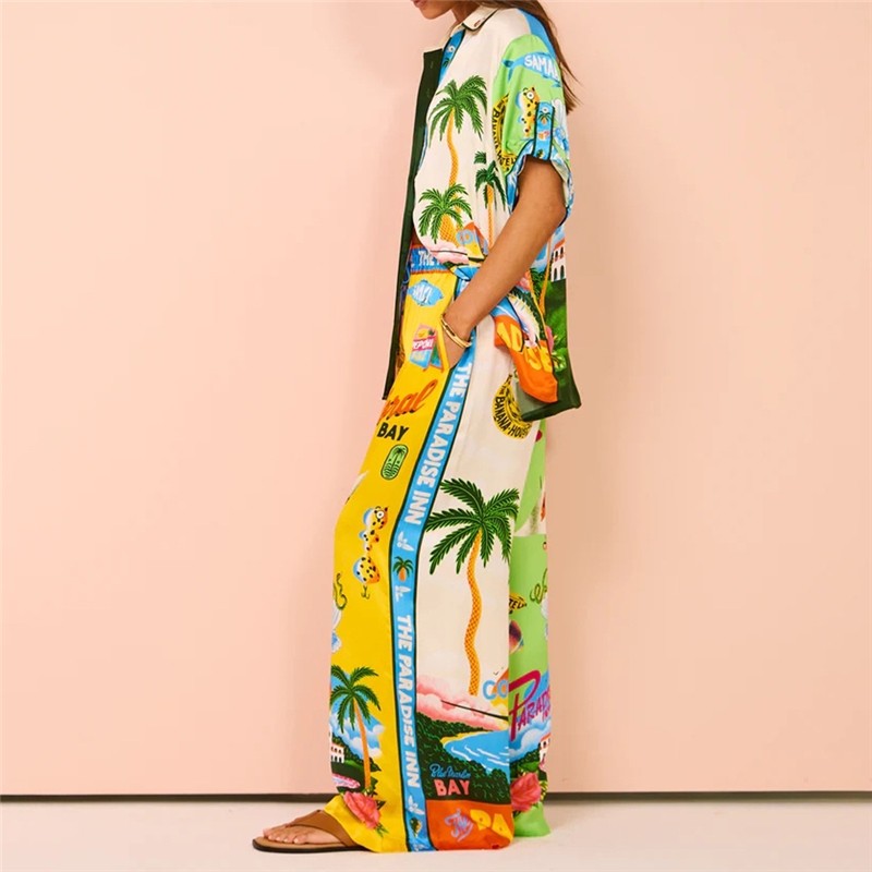 Loose Fit Printed Short Sleeve Shirt And Pants Set