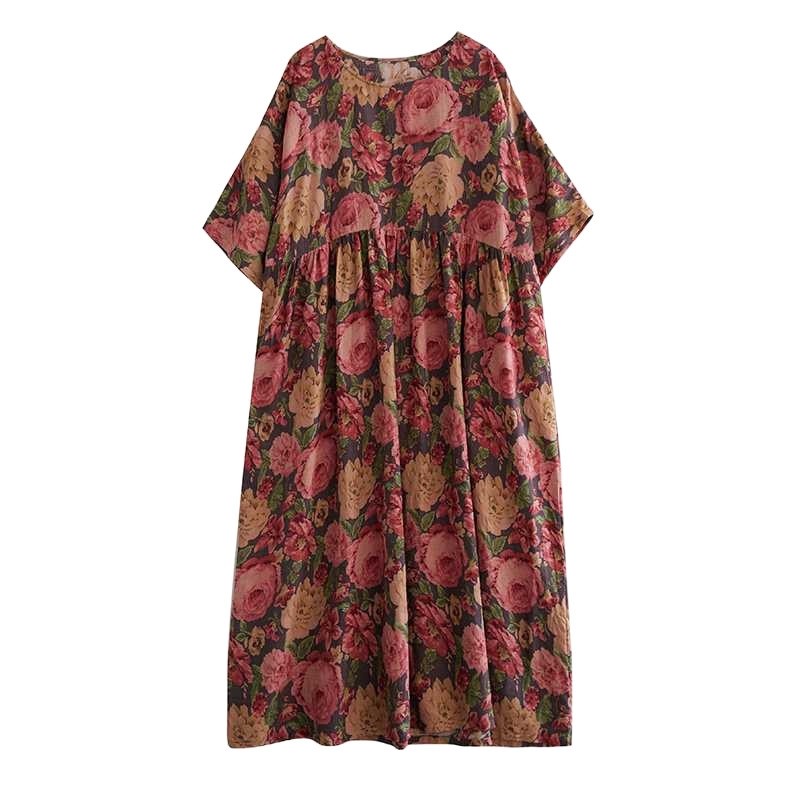 Loose Fit Short Sleeve Round Neck Swing Dress
