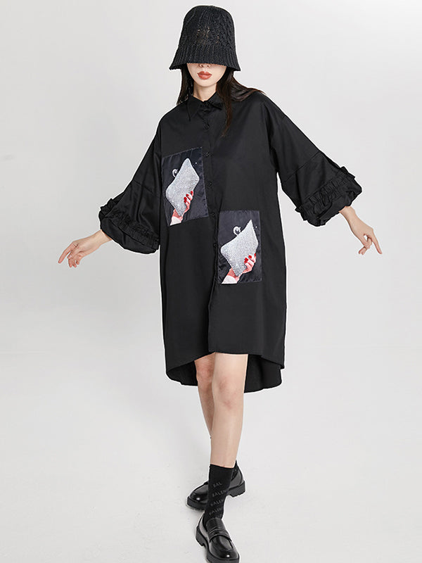 Loose High-Low Irregular Applique Shirt Dress Mini Dress