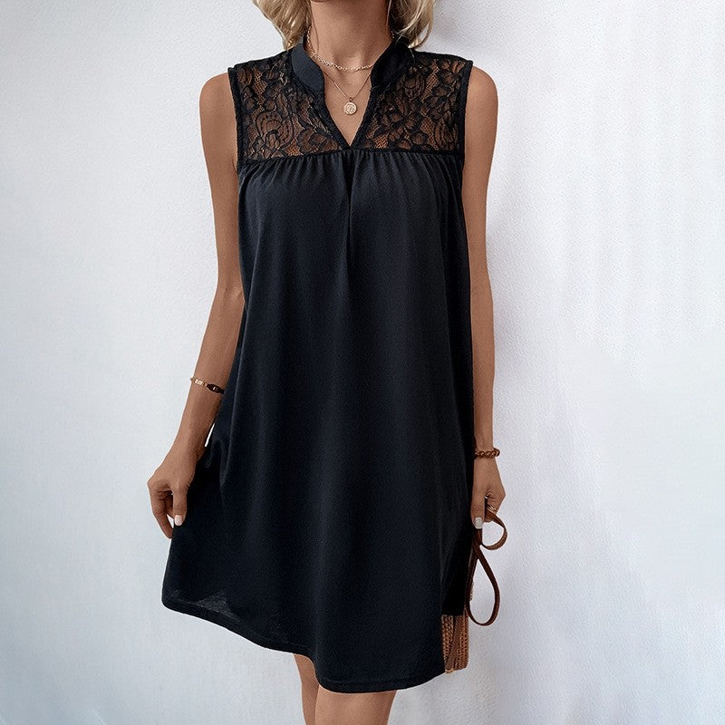 Loose Lace Trim Plain Dress