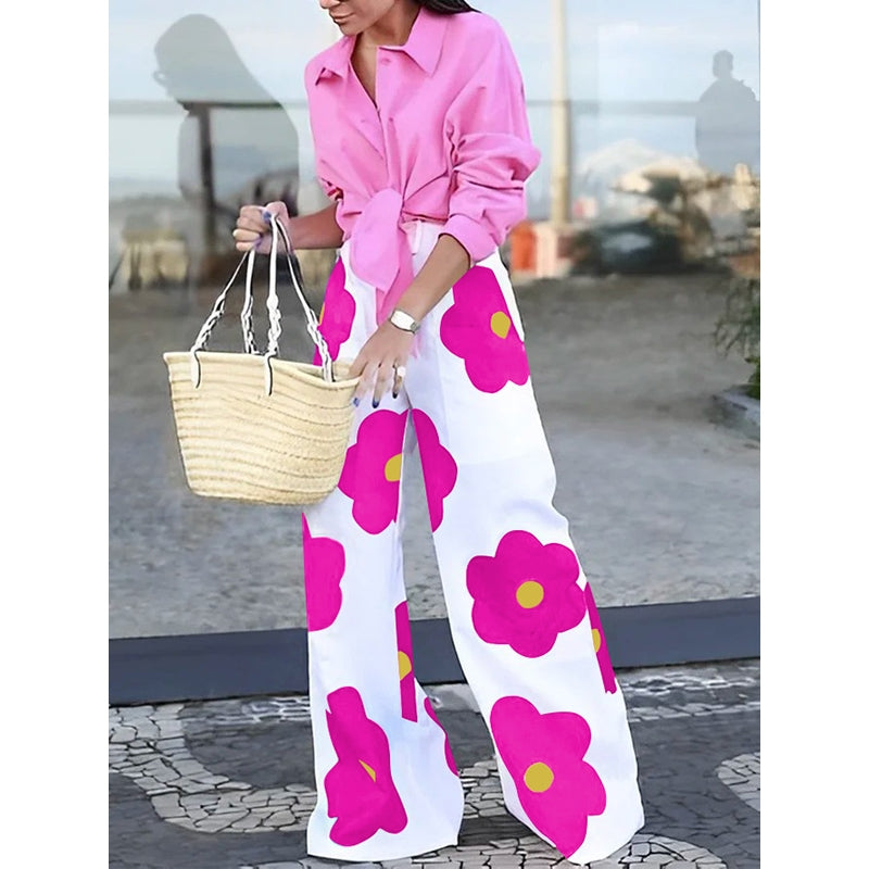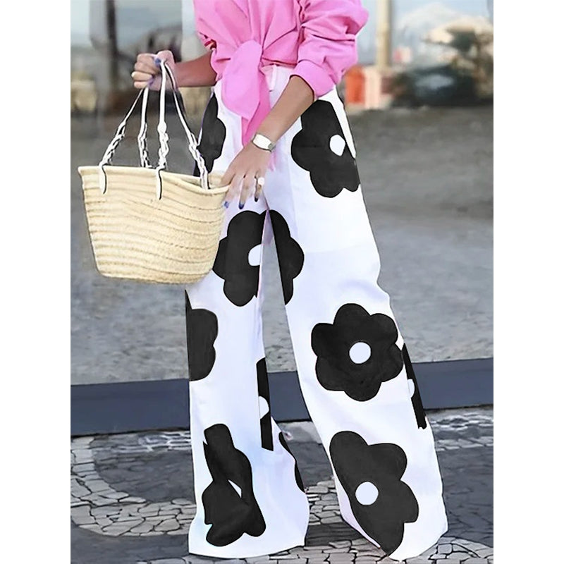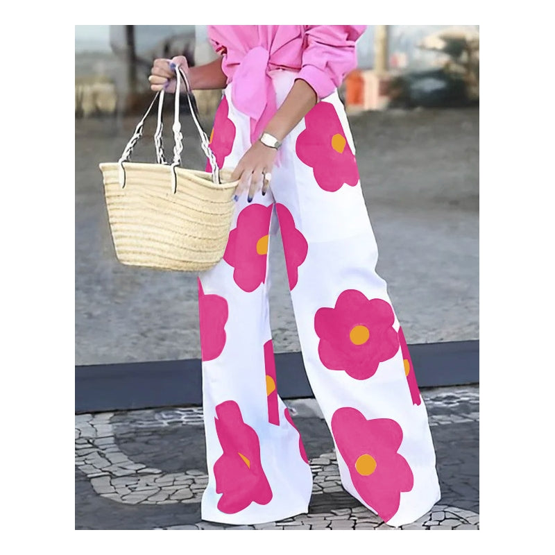 #Casual Pants Bottoms, #Floral Printed Pants, #Wide Leg Pants, #Contrast Color Pants, #Spring Bottoms, #Summer Pants, #Original Creation Bottoms, #Loose Fit Pants, #Cotton-Blend Bottoms, #Dacron Pants,