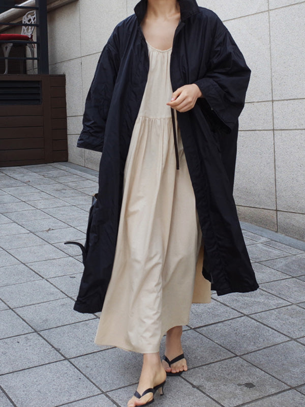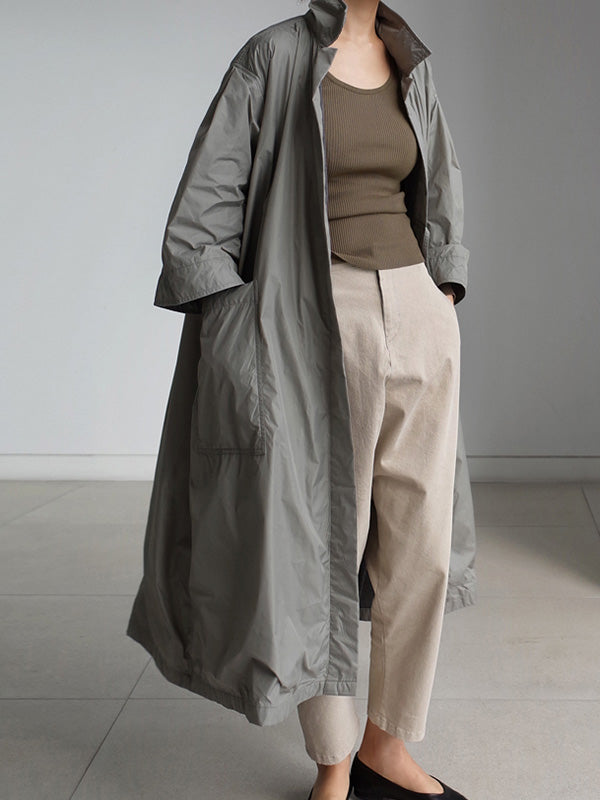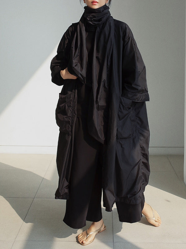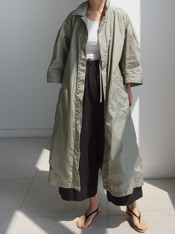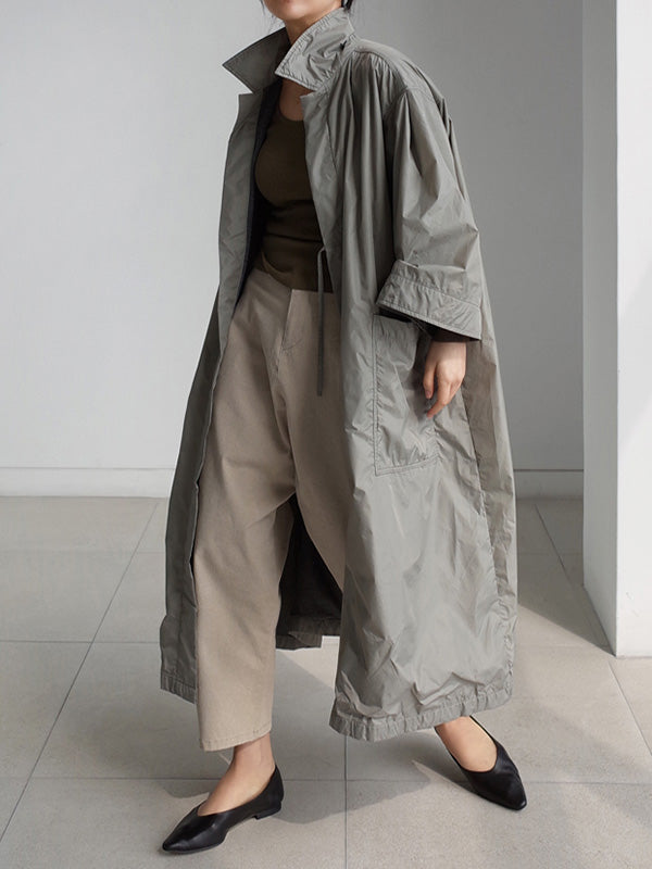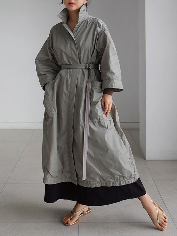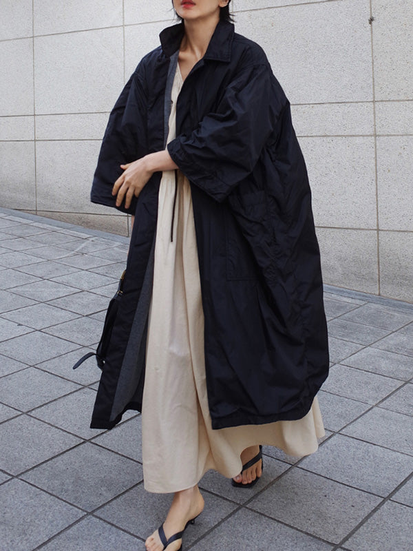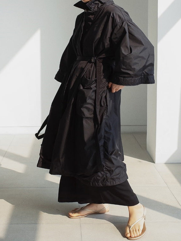 Original Loose Tied Notched Collar Long Sleeves Padded Trench Coat