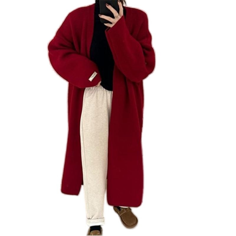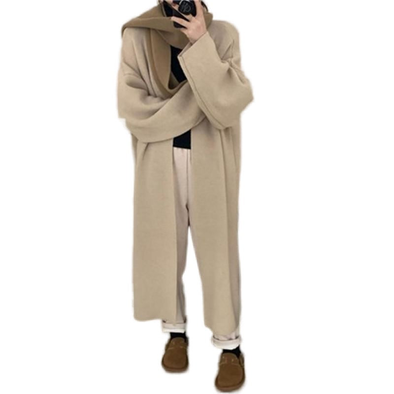Oversized Solid Color Knee-Length Knit Cardigan Coat