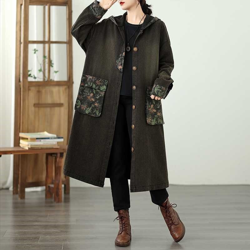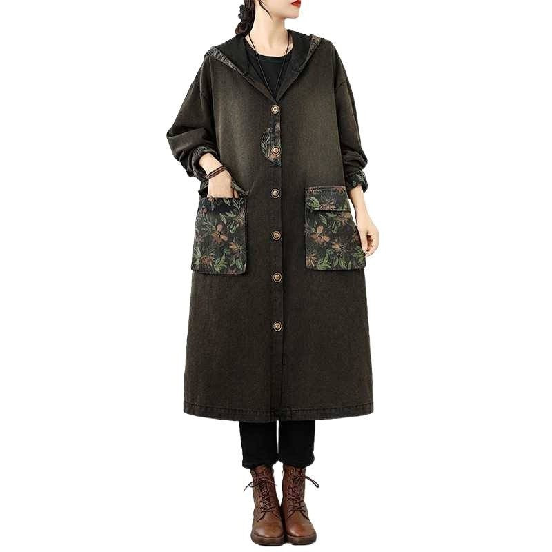 Plus Size Loose V Neck Denim Trench Coat