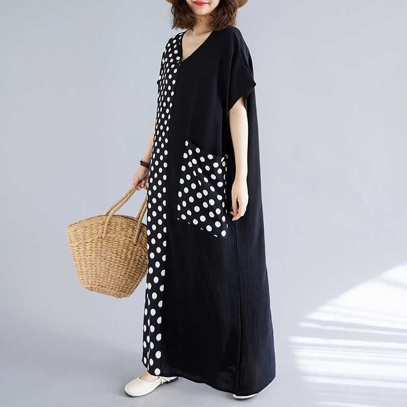 Polka Dot Print Spliced Short Sleeve Maxi Dress