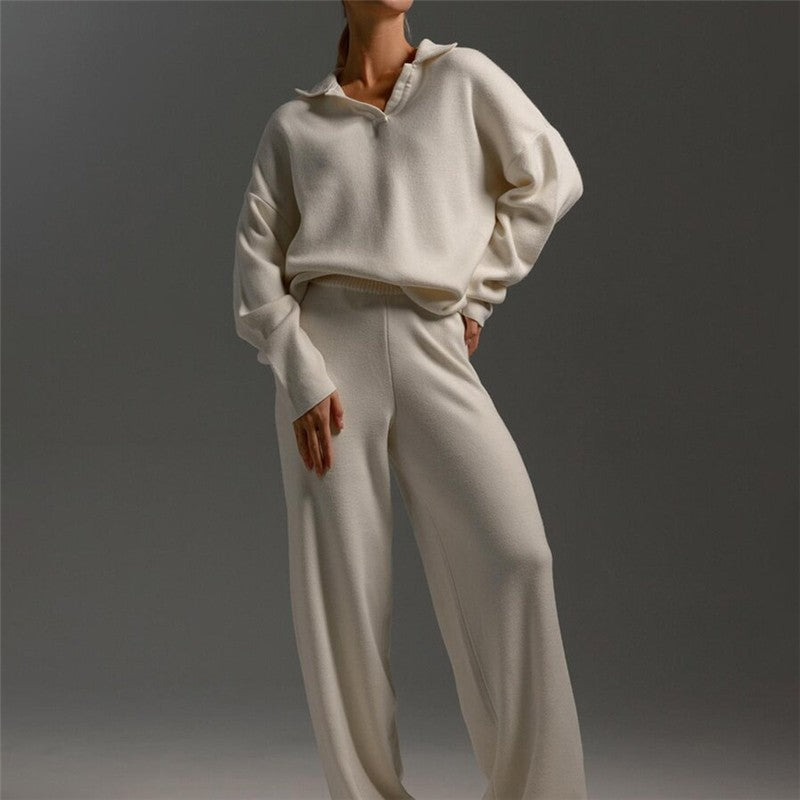 Polo Neck Knit Sweater Wide Leg Pants Set