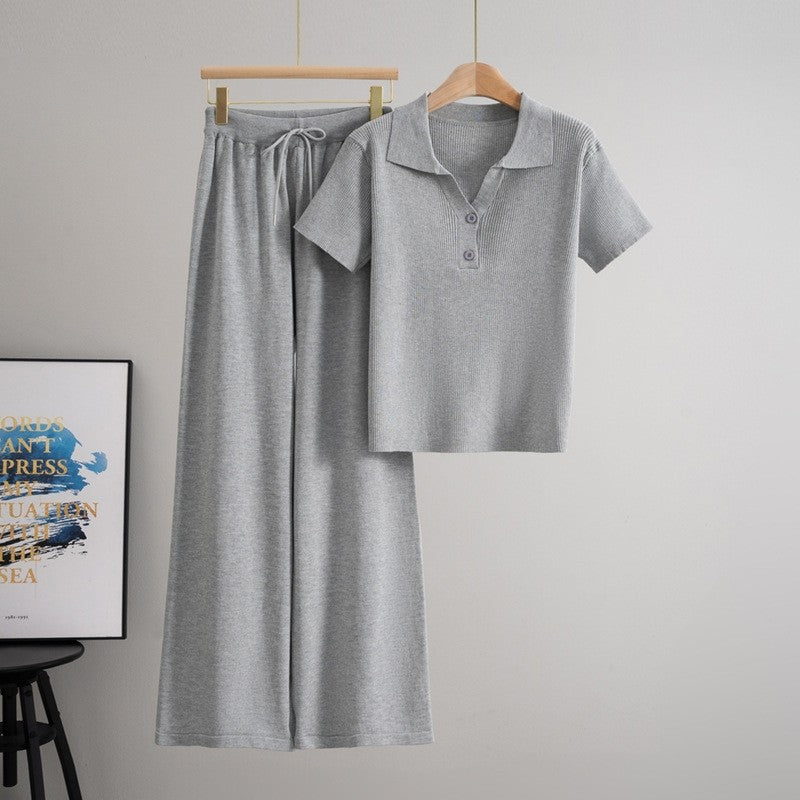 Polo Neck Knitwear Two Piece Set