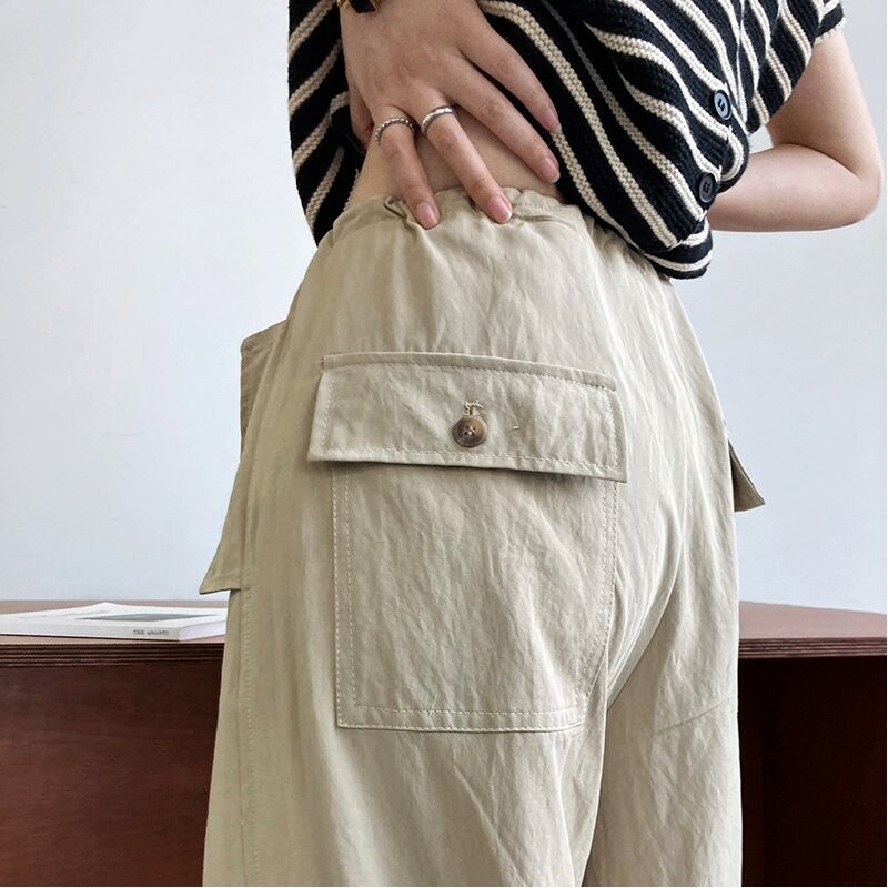 Relaxed High-Waisted Wide Leg Pants With Drawstring