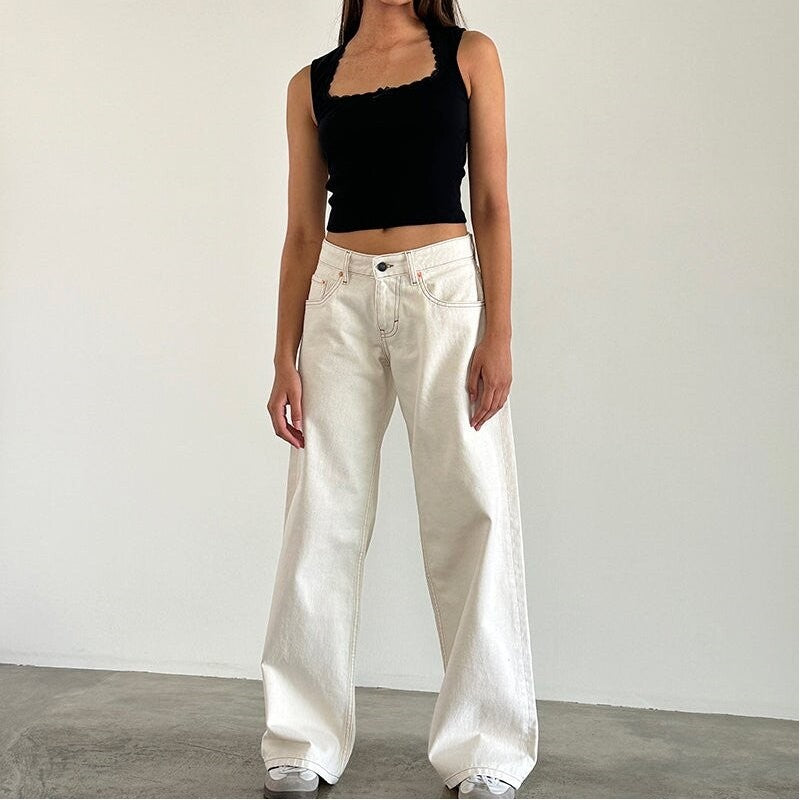 Elevate your casual wardrobe with our Retro Low Waist Straight Leg Jeans. Crafted in non-stretch water washed denim, these loose-fit jeans exude intellectual, artistic retro vibes perfect for a girlish yet mature look. Ideal for all seasons, these vintage-inspired bottoms are versatile for going out or casual wear. Experience a blend of light maturity and girlish sweetness in leisure fashion.