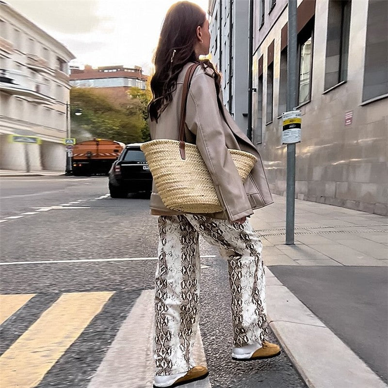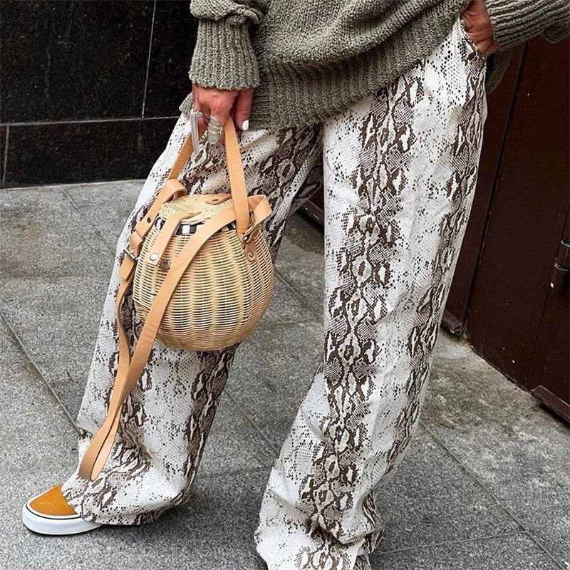 Retro Snake Print High Waist Straight Pants