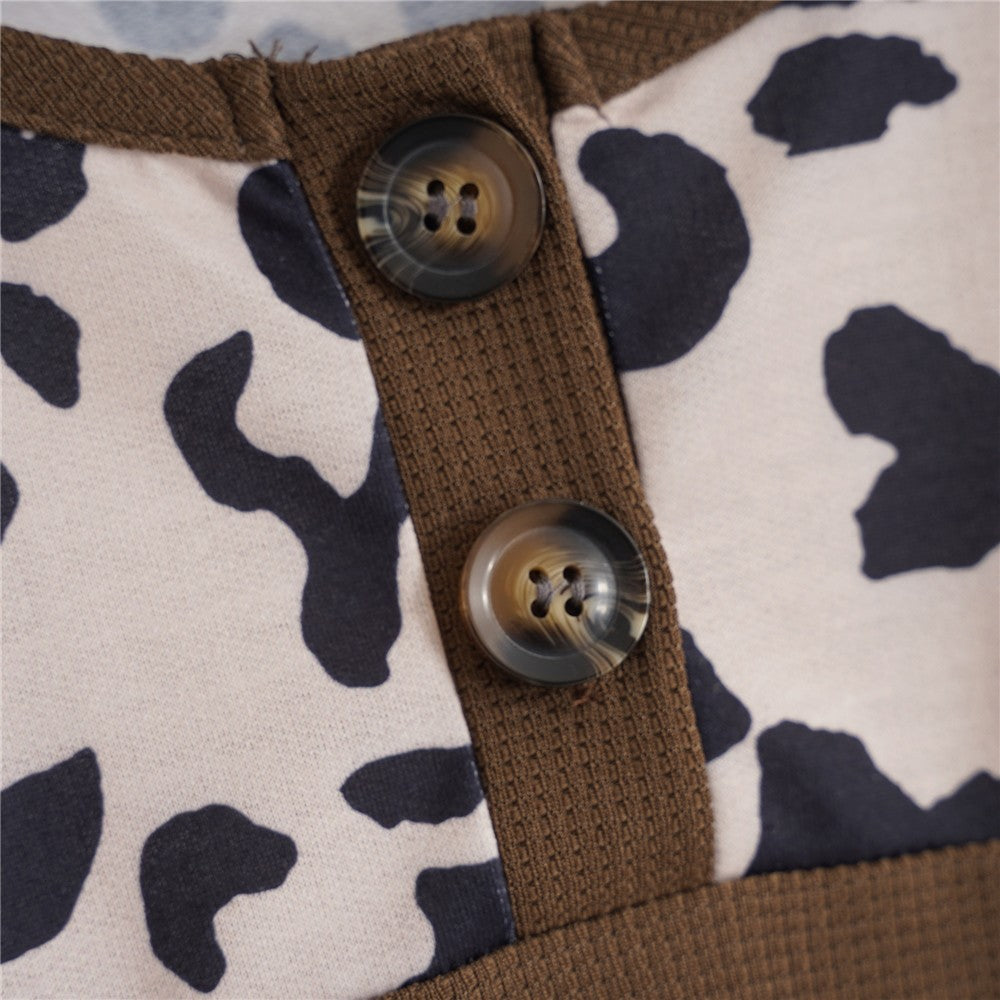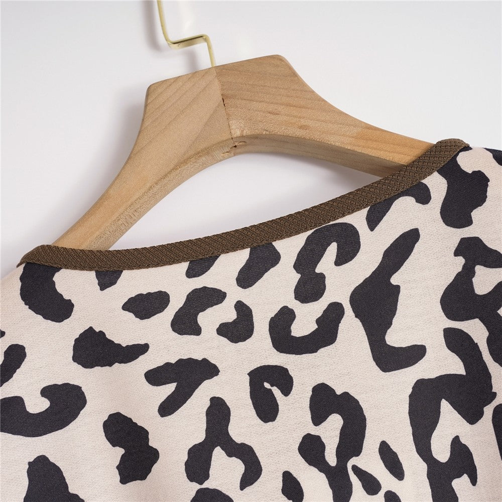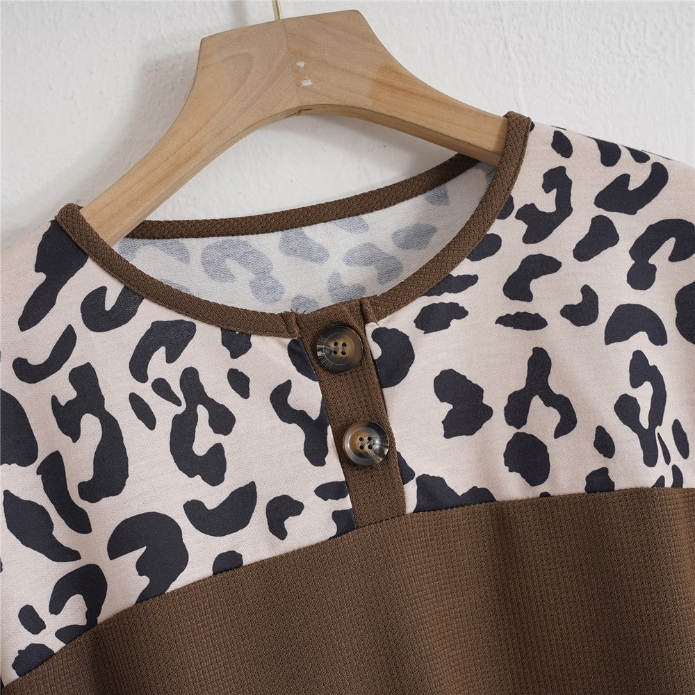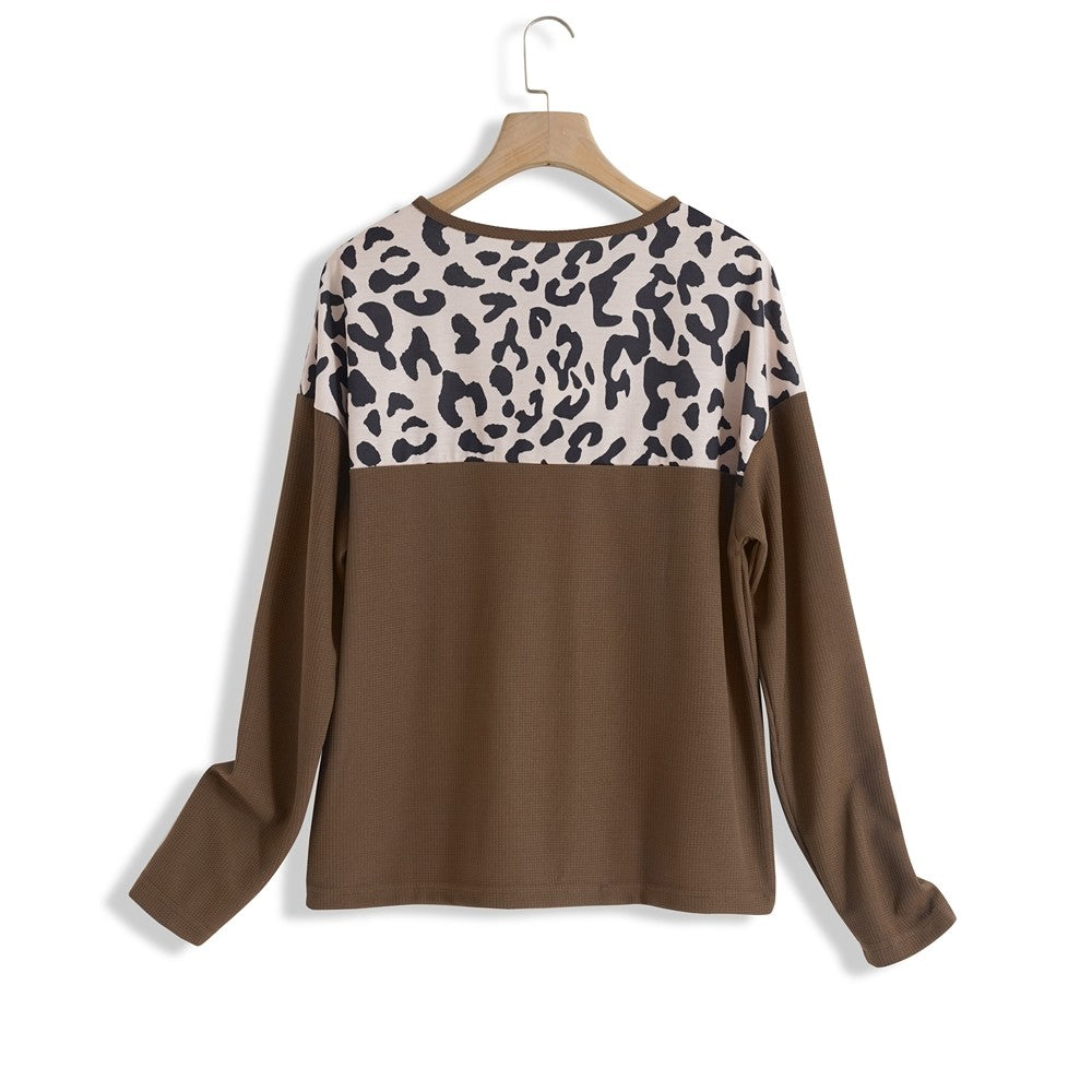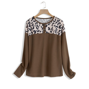 Round Neck Long Sleeves Leopard Printed T-Shirt