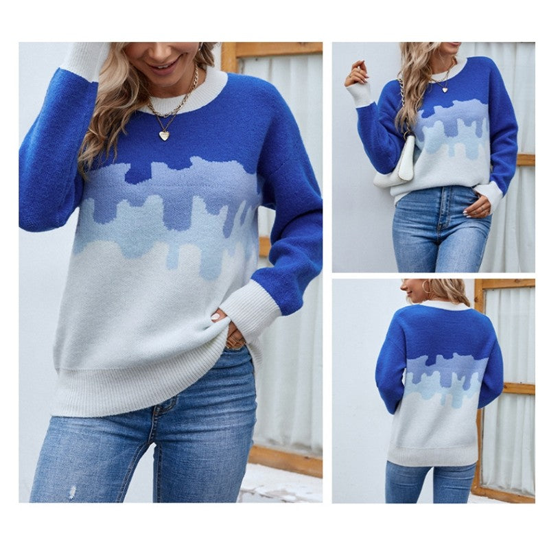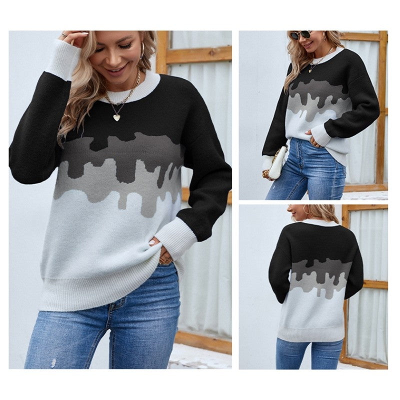 Round Neck Ombre Knit Contrast Sweater