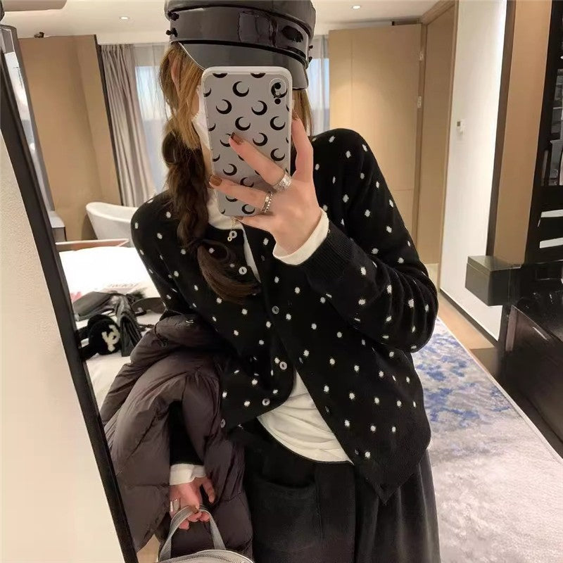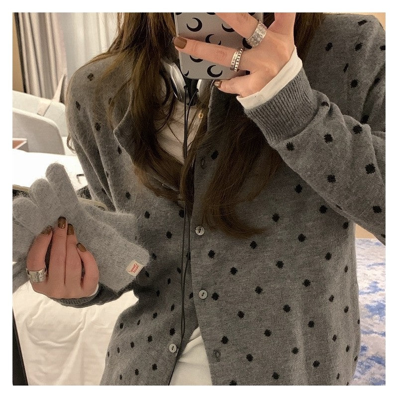 Round Neck Polka Dot Jacquard Knit Cardigan