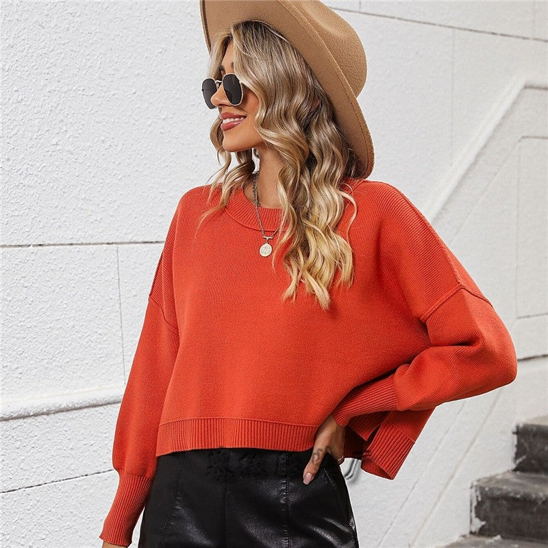 Round Neck Solid Color Loose Pullover Sweater