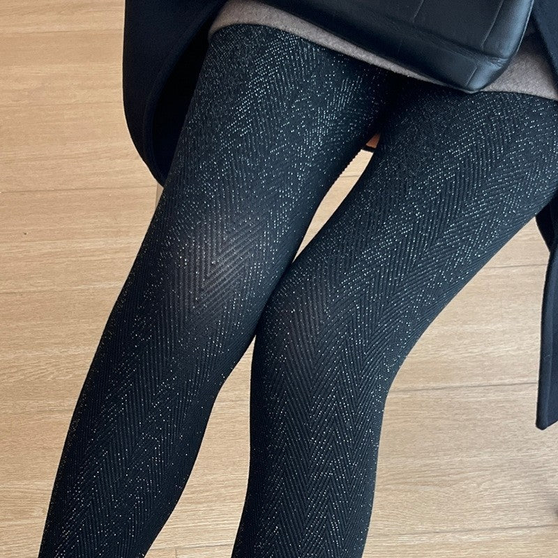 Shining Silver Thread Jacquard Leggings